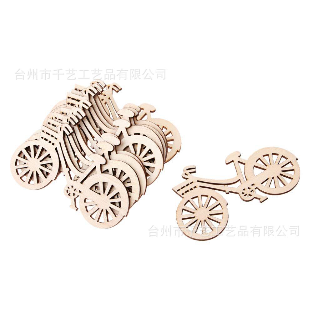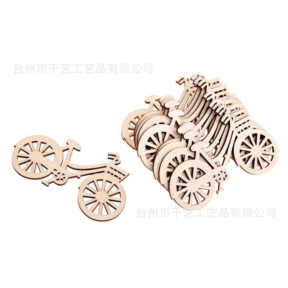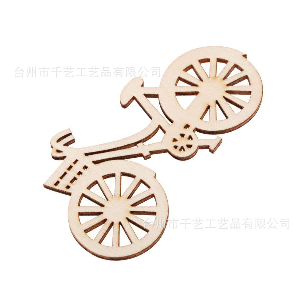 Bicicleta de madeira sem pintura, superfície de artesanato em madeira para decoração rústica de festa de casamento e casa.