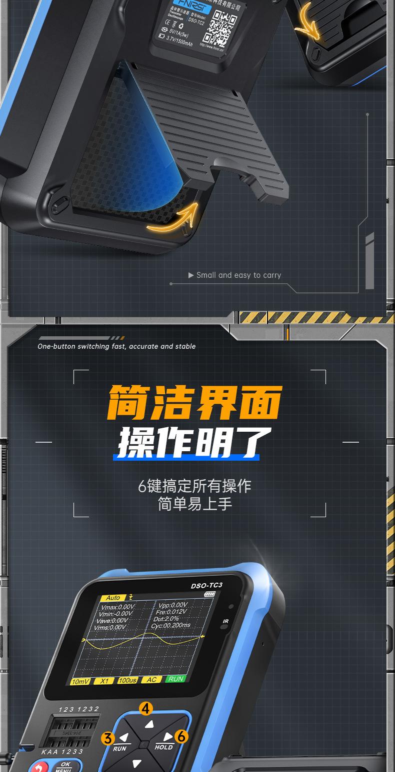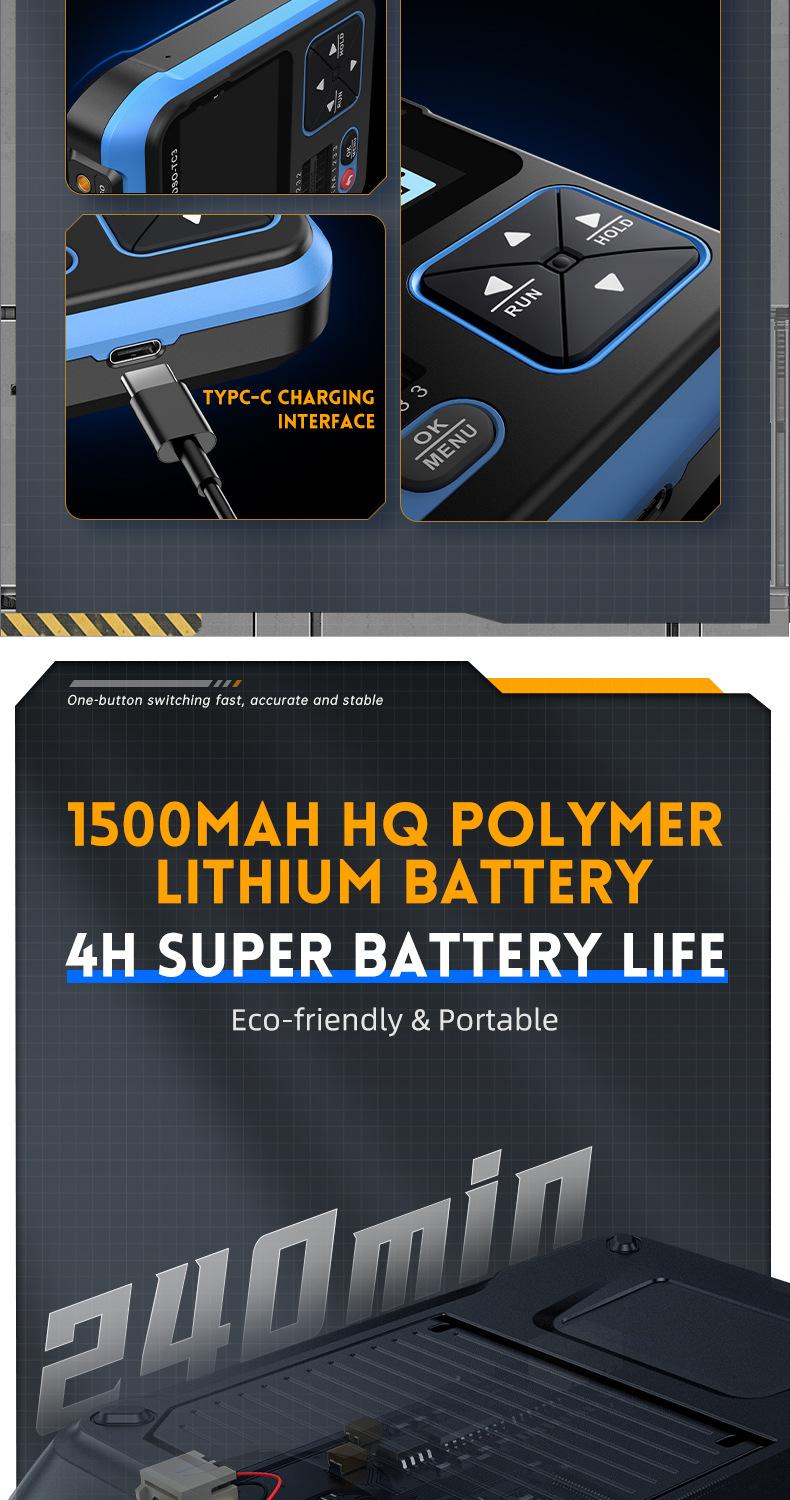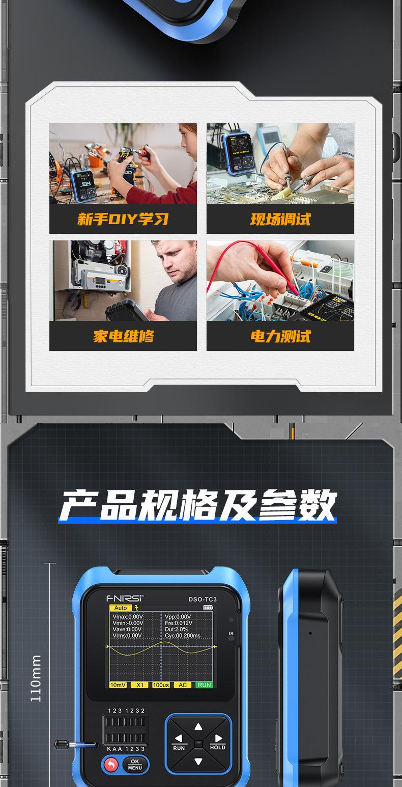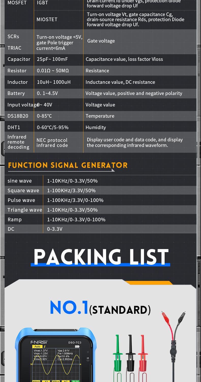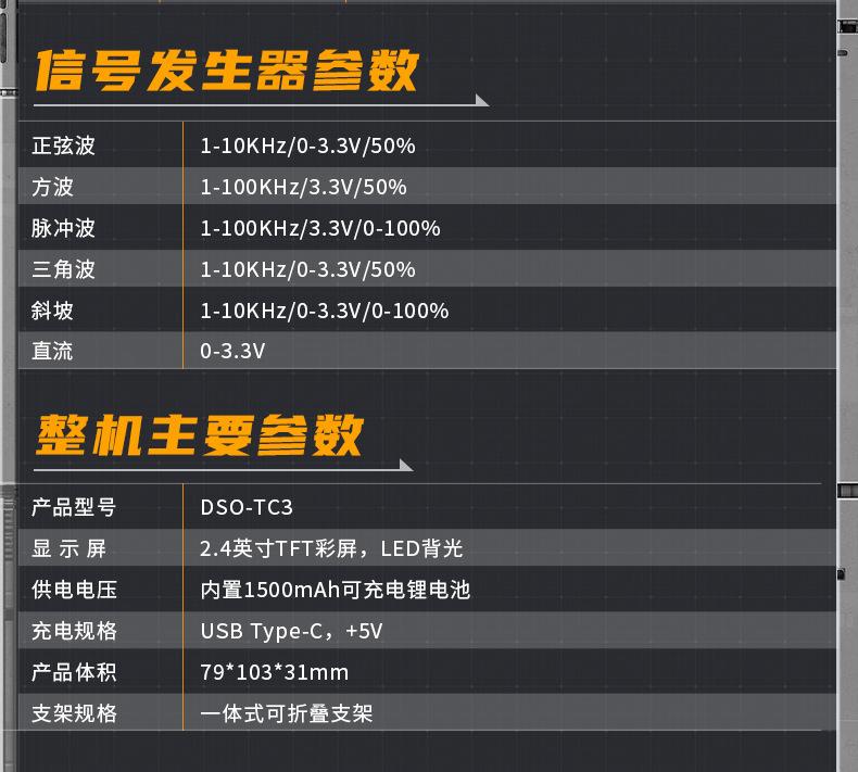 El DSO-TC3 ha ampliado el rango de prueba basado en el TC2. Por ejemplo, se ha aumentado el ancho de banda de la función de osciloscopio a 500 kHz y se ha añadido la función de generador de señales.