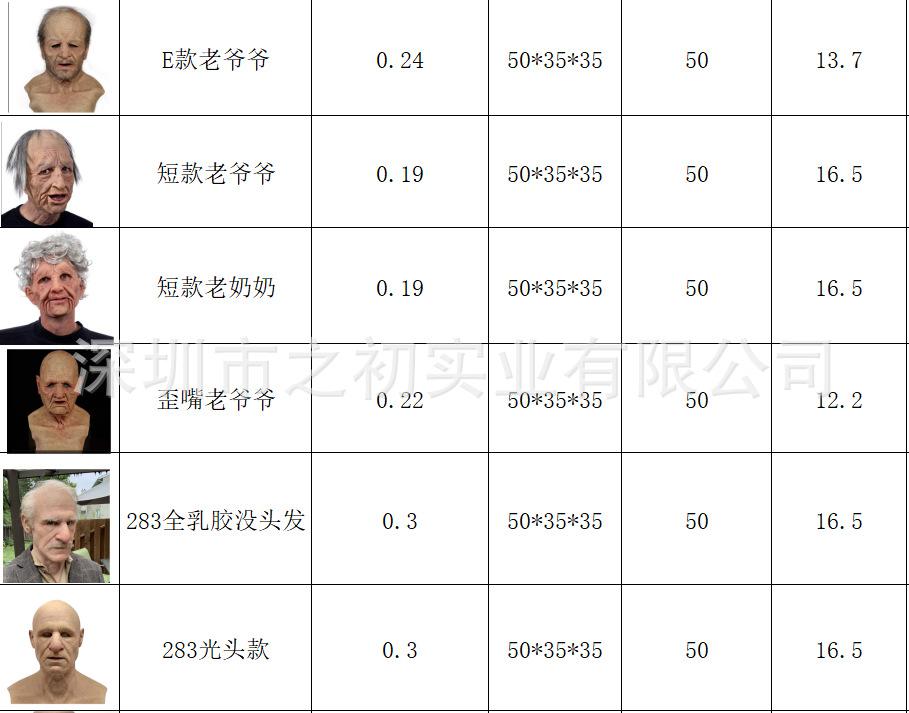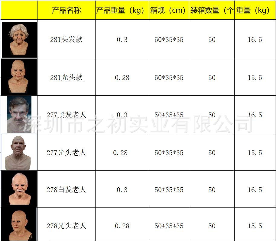 Peso: máscara de cabeza calva 300g, tamaño 40*27cm/máscara de anciano 200g tamaño: 30*27cm