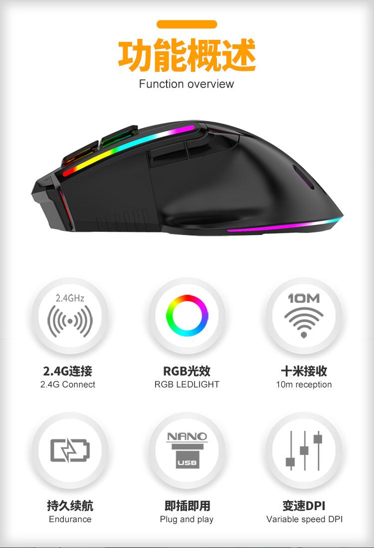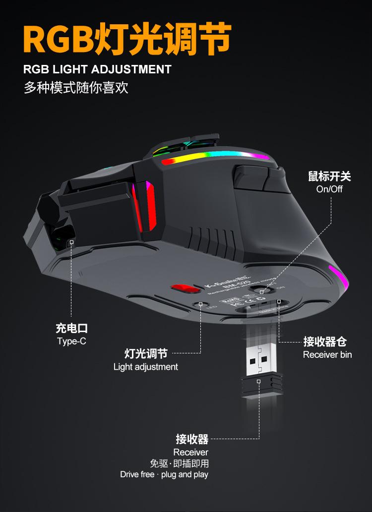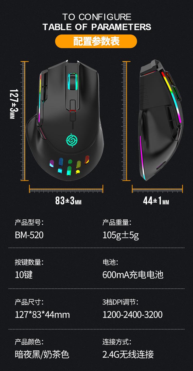 Nuestros productos no admiten facturación. Por favor, contacte con servicio al cliente para detalles. ¡Gracias por su cooperación! Mouse inalámbrico recargable Viper BM520 juego e-sports RGB colorido computadora de escritorio portátil oficina transfronterizo