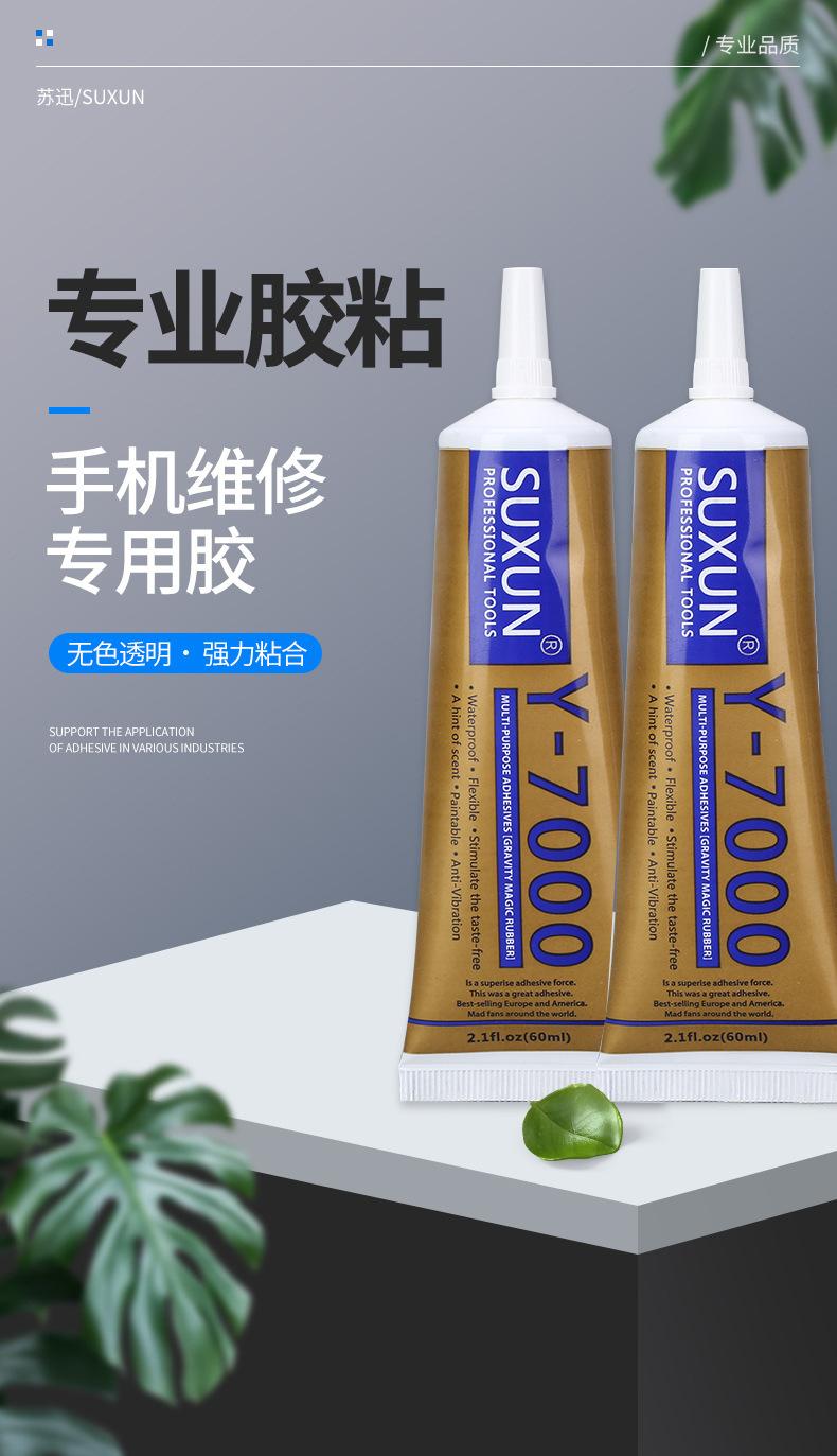 SUXUN Y-7000 tem um leve odor pungente e é um adesivo de solução transparente novo de um componente. Ele cura em temperatura ambiente e é fácil de operar. Não requer reembalagem e pode ser aberto.