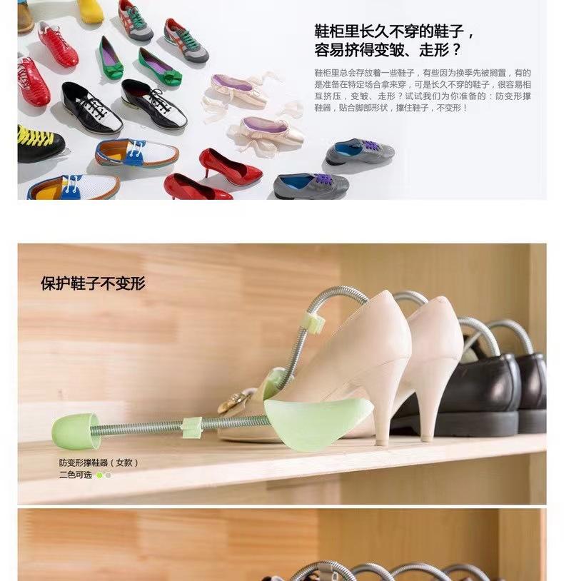 Los zapatos de cuero pueden deformarse debido a la compresión durante el almacenamiento o problemas con los pies mismos y la postura al caminar durante el uso, la temperatura corporal, la humedad, el agua de lluvia e incluso el sudor de los pies. Este horma utiliza la fuerza de rebote del resorte para hacer que el extremo delantero de la horma presione firmemente contra la cara delantera de la cavidad del zapato, y el soporte trasero contra la parte posterior del zapato, manteniendo una fuerza de soporte constante para la horma, corrigiendo y manteniendo eficazmente las suelas y los empeines de los zapatos de cuero. Es fácil de usar y tiene un efecto notable. Puede usarlo para dar soporte a los zapatos que usa a menudo, o para conservar los zapatos de cuero de temporada y sin usar. Con este buen compañero, los zapatos permanecen como nuevos y nunca se deforman, extendiendo eficazmente su vida útil!!