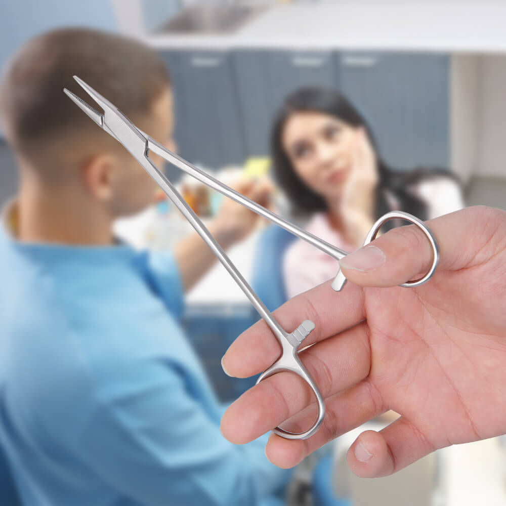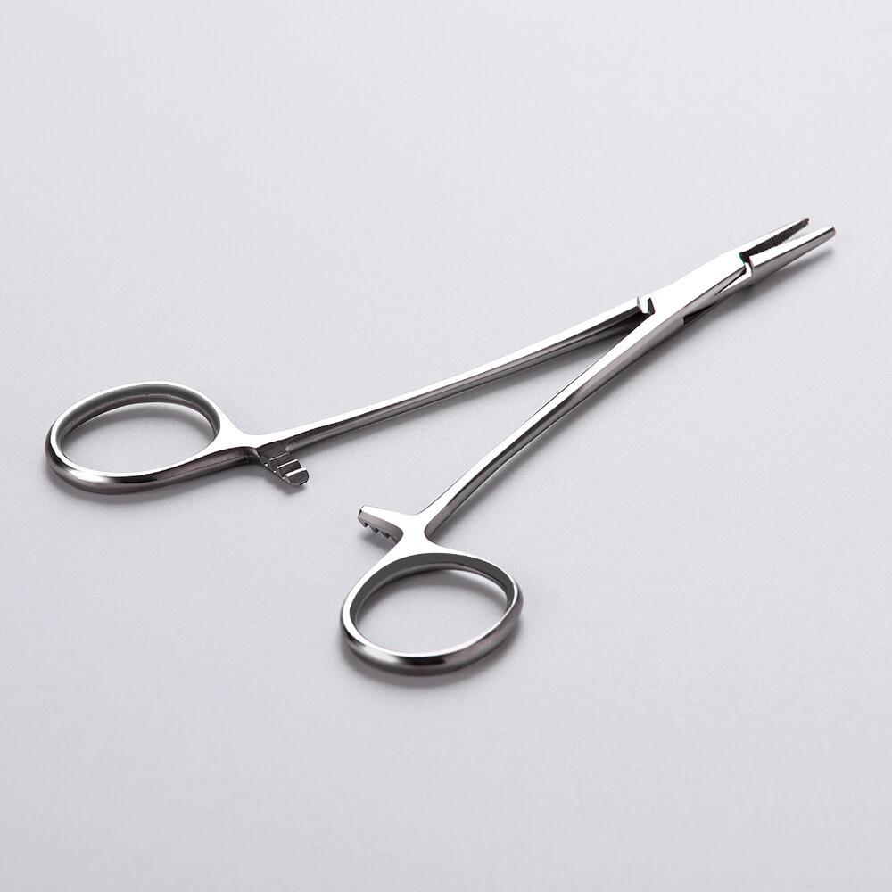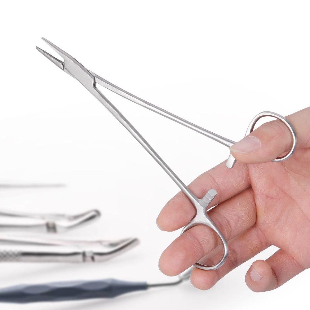 Portaagujas veterinario portaagujas de acero inoxidable fórceps hemostáticos equipo veterinario equipo de zootecnia portaagujas cabeza recta