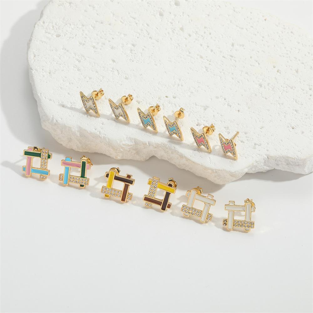 [Nome do produto] Popular na Europa e América, brincos de design de relâmpago de personalidade de nicho, óleo de gota de dopamina, personalidade de luxo leve, brincos versáteis