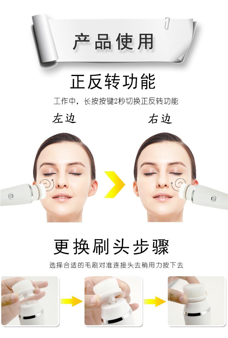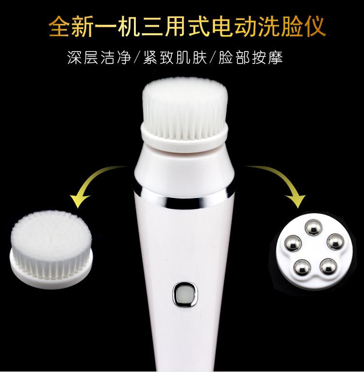 Este producto viene con dos cepillos diferentes y un cabezal de masaje con rodillo, que se pueden usar de tres maneras en una sola máquina, adecuado para diferentes tipos de piel.