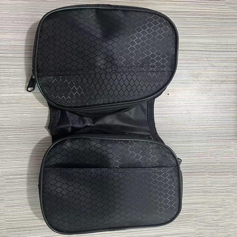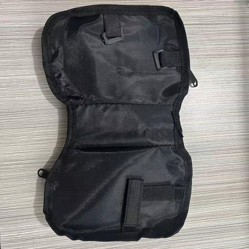 ②Pequeña bolsa de malla en el lateral, dos correas, una fijada en el tubo superior delantero y otra fijada en la viga, ambas con velcro.