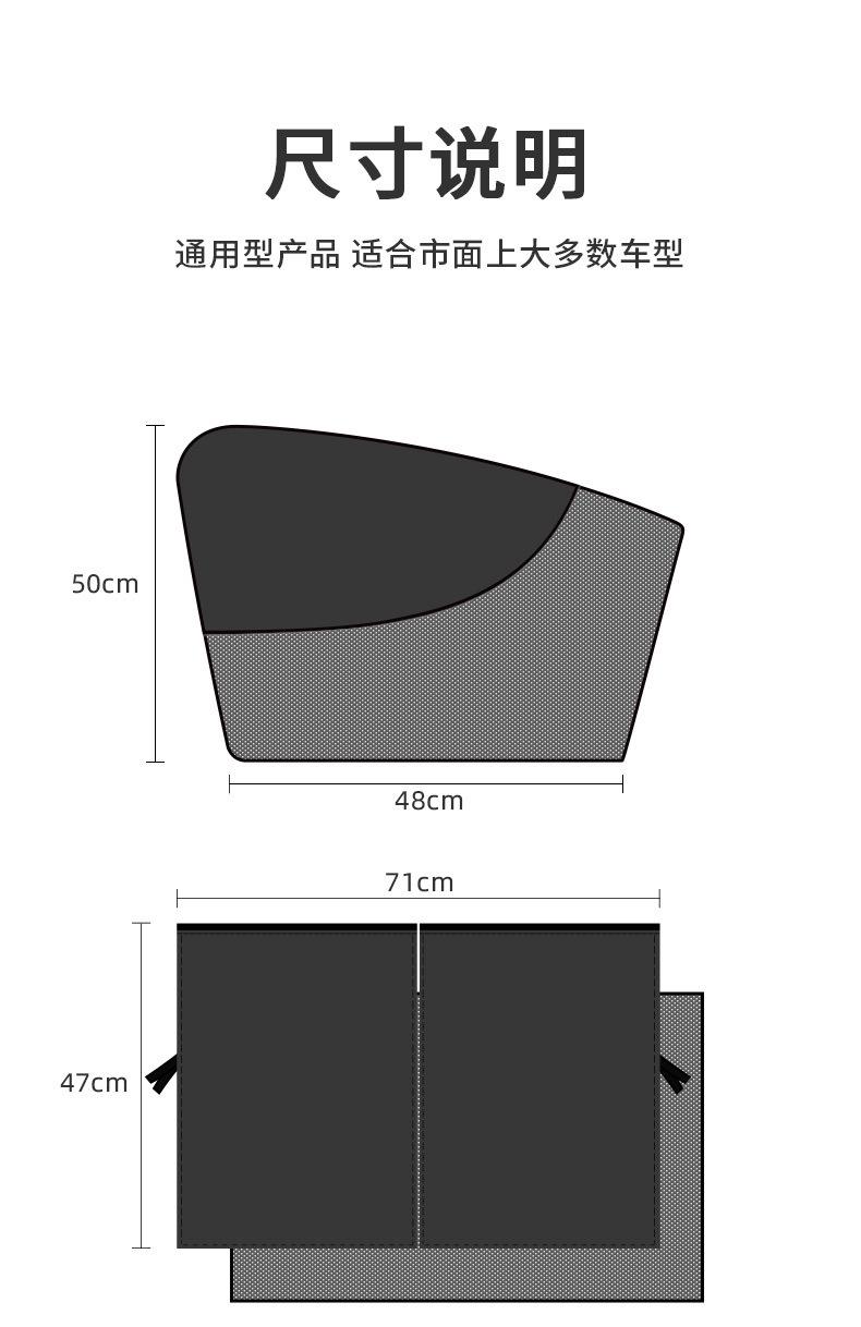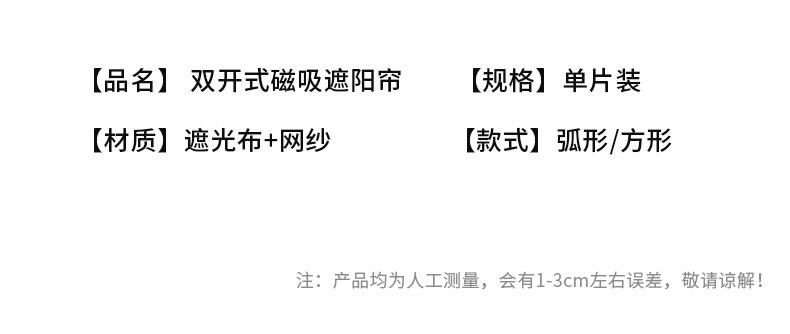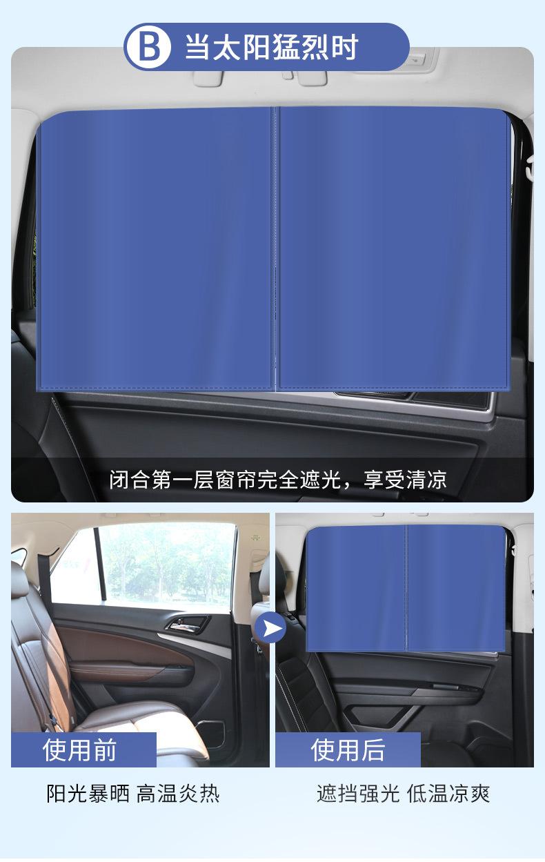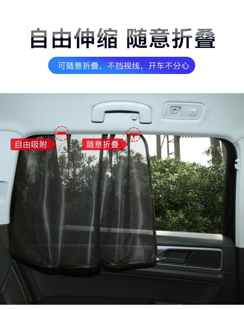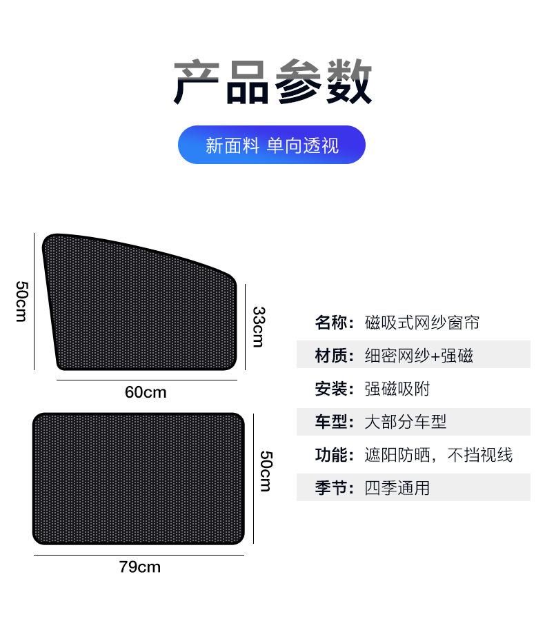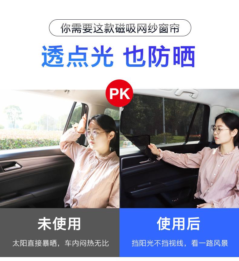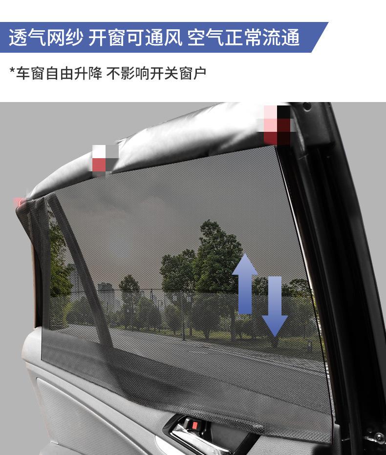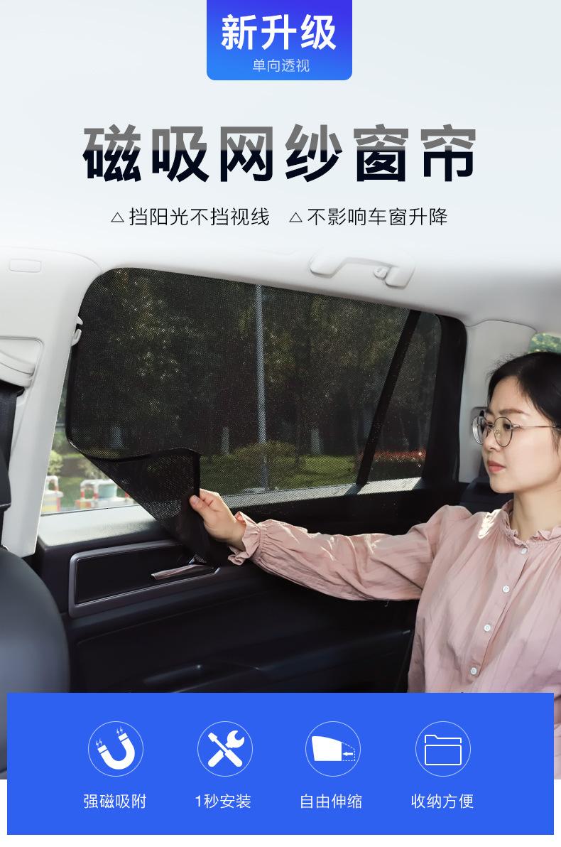 Características: 10 ímãs fortes, deslizamento suave, não grudam. O revestimento de cola preta é uniforme, o desempenho de proteção contra luz é muito bom, nenhuma luz é transmitida e a privacidade é protegida. A cola preta pode ser recolhida, a malha tem boa ventilação e diferentes métodos de uso são usados em diferentes cenas.