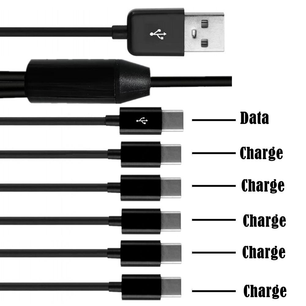 Cable de carga USB de uno a seis de uno a seis con 6 interfaces tipo C cable de datos de carga cable de carga USB 0.5 metros/1.5 metros
