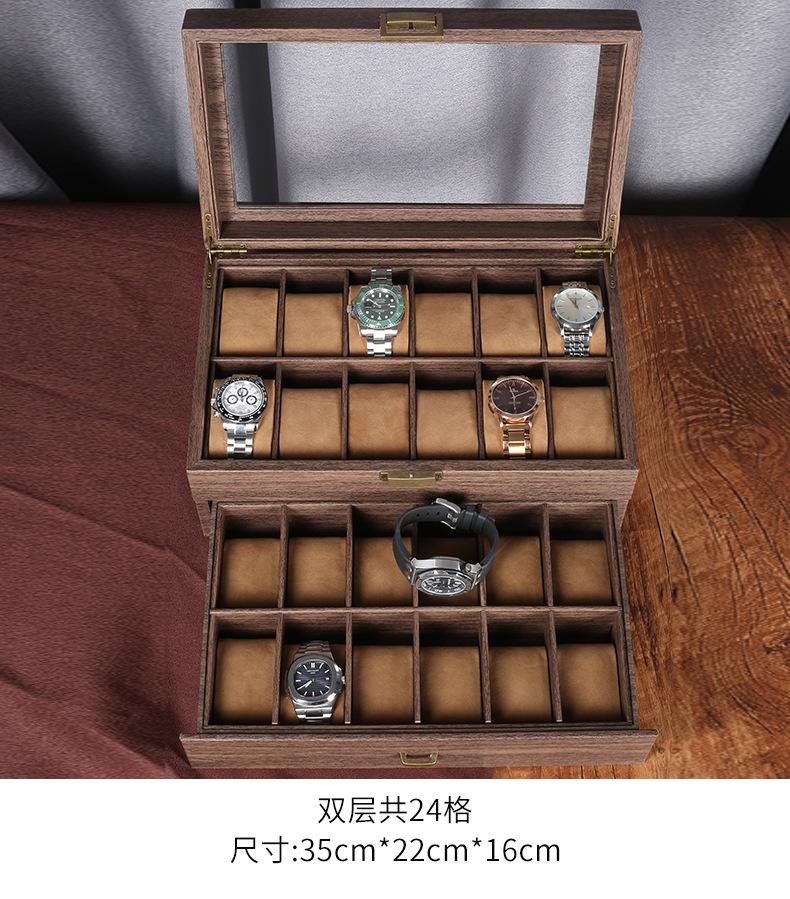 [Estilo]: caixa de relógio de fibra de carbono de camada dupla para 24 relógios