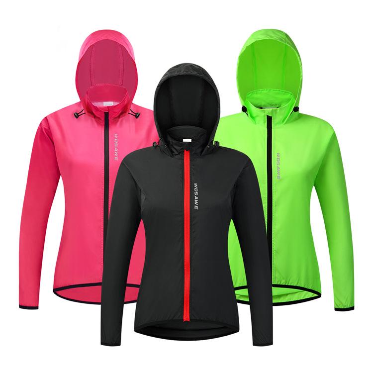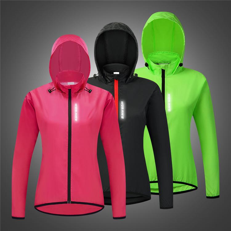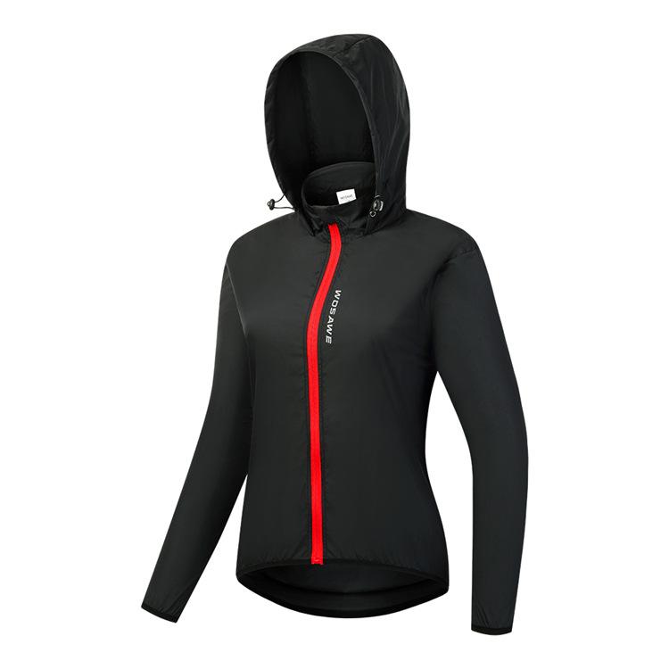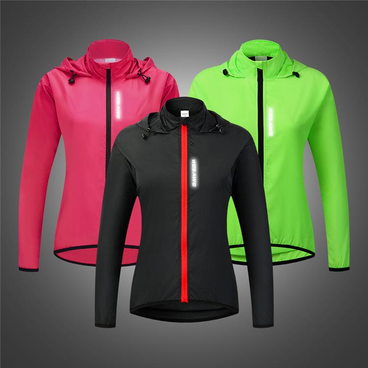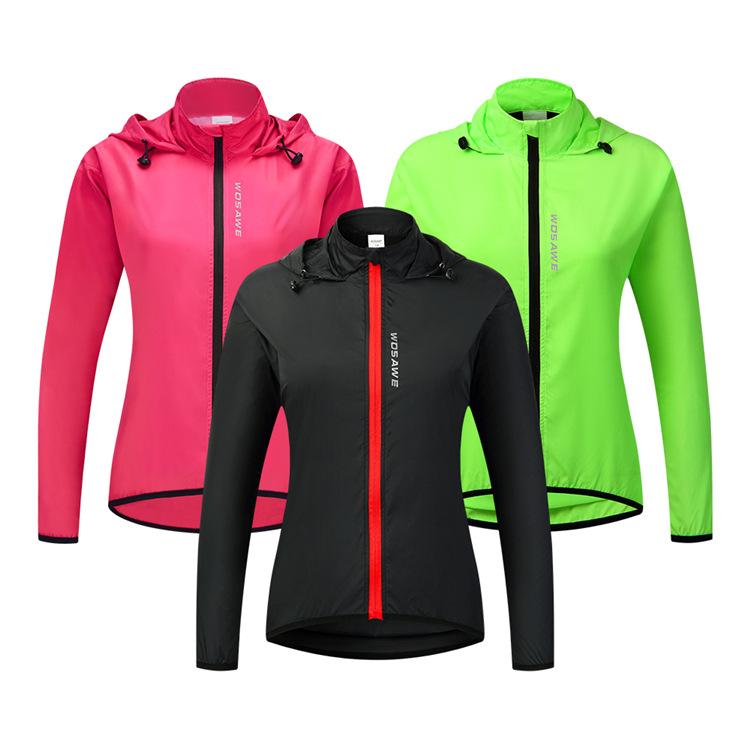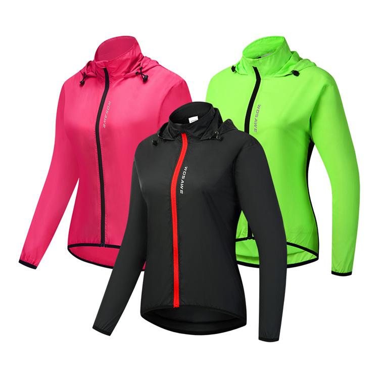 WOSAWE feminino ciclismo com capuz corta-vento leve à prova de vento e água top corrida esportes secagem rápida ciclismo roupas