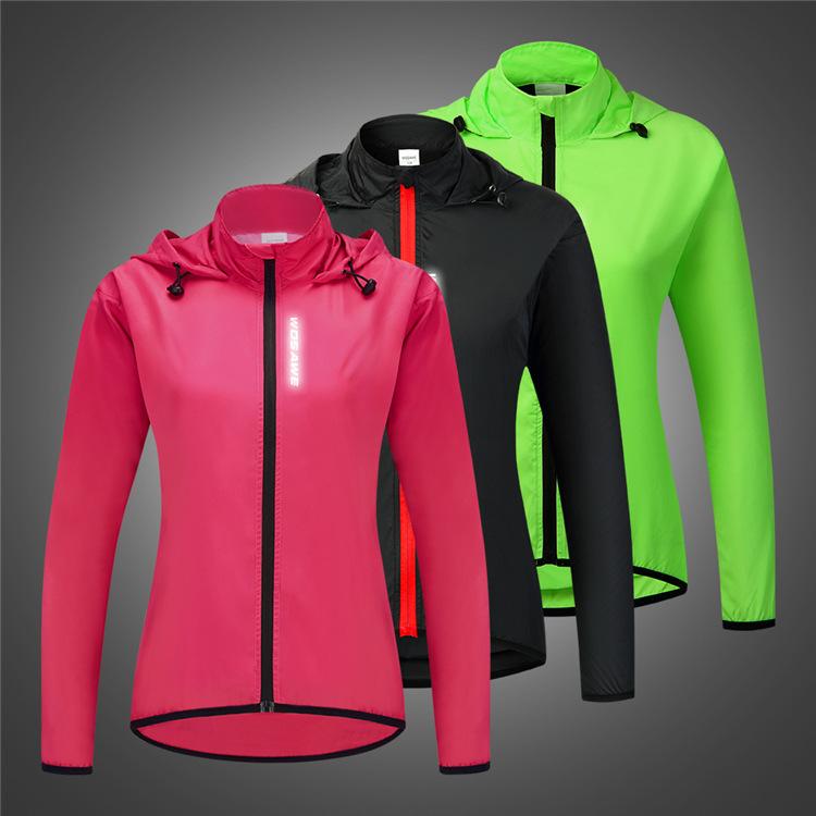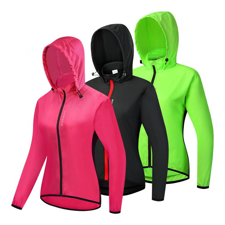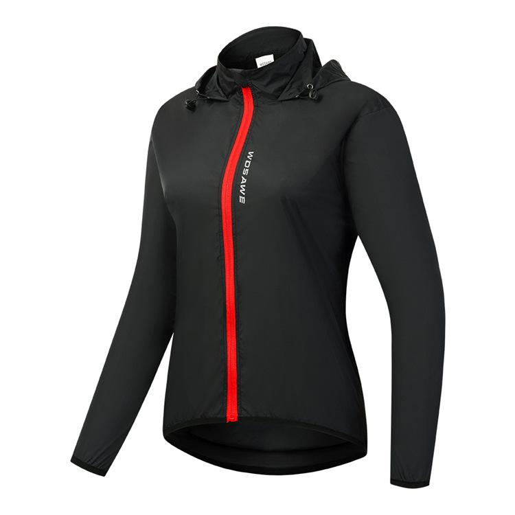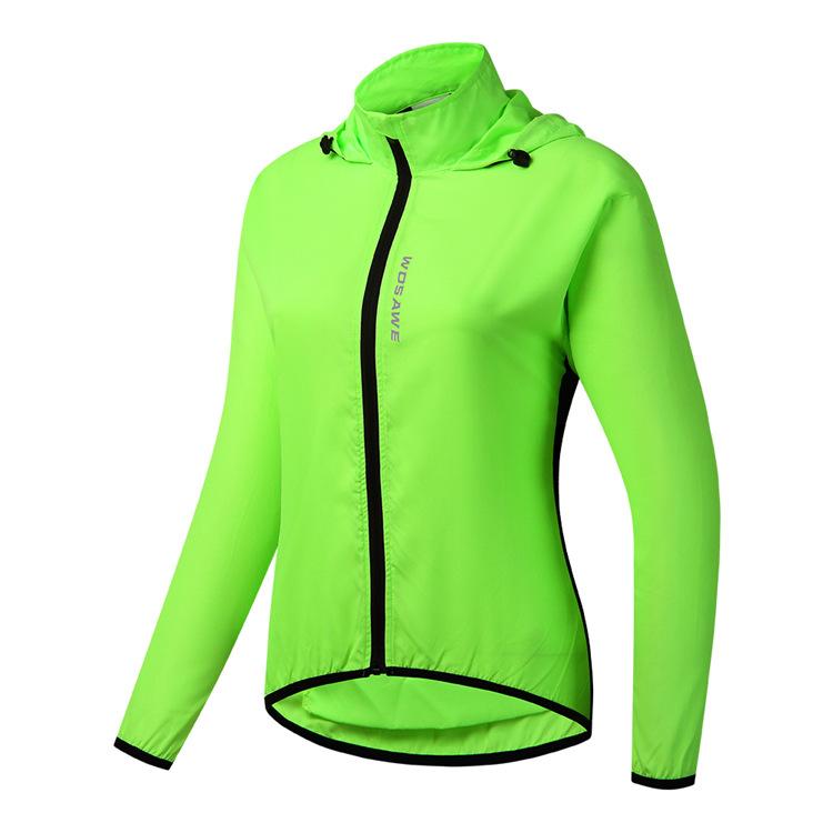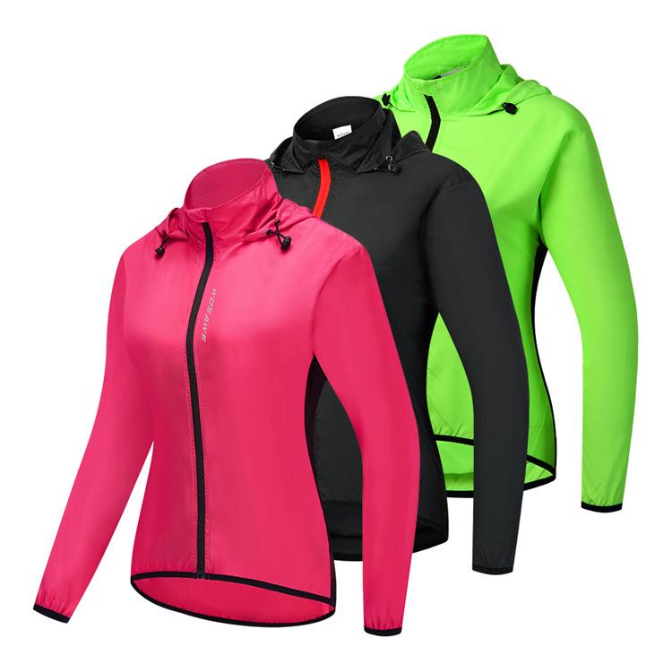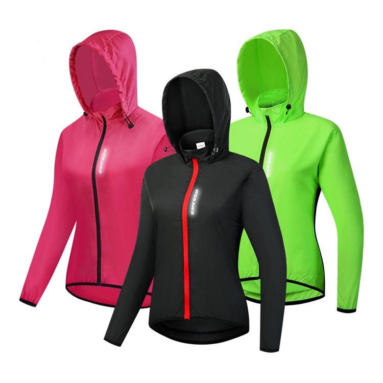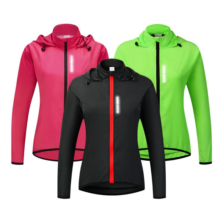 WOSAWE feminino ciclismo com capuz corta-vento leve à prova de vento e água top corrida esportes secagem rápida ciclismo roupas