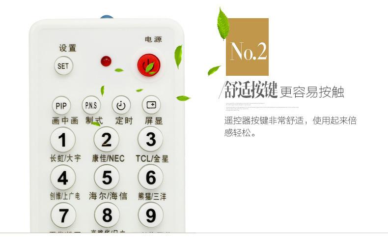 Instruções de uso: Ligue a TV primeiro e pressione longamente o botão da marca correspondente ou o botão de configuração no canto superior esquerdo. Quando o ícone de volume aparecer na TV, solte-o imediatamente em um segundo (se a função não estiver correta, defina-a novamente). Após a configuração, ele será tão sensível quanto o controle remoto original. Após o uso normal, pressione longamente o canto inferior direito para completar a chave para bloquear o código (para desbloquear, pressione longamente o botão normal inferior direito).
