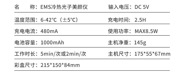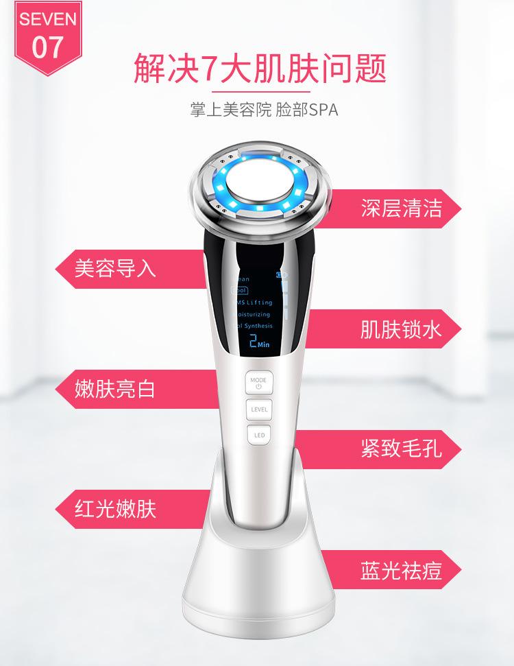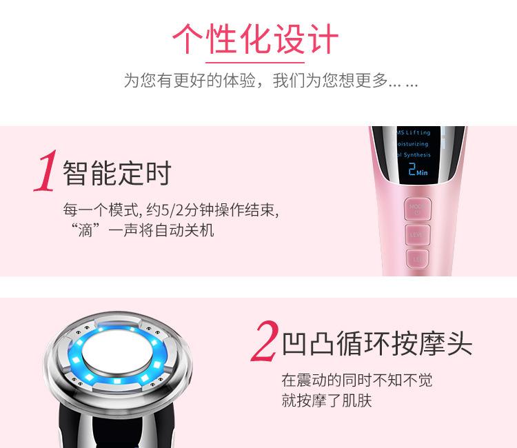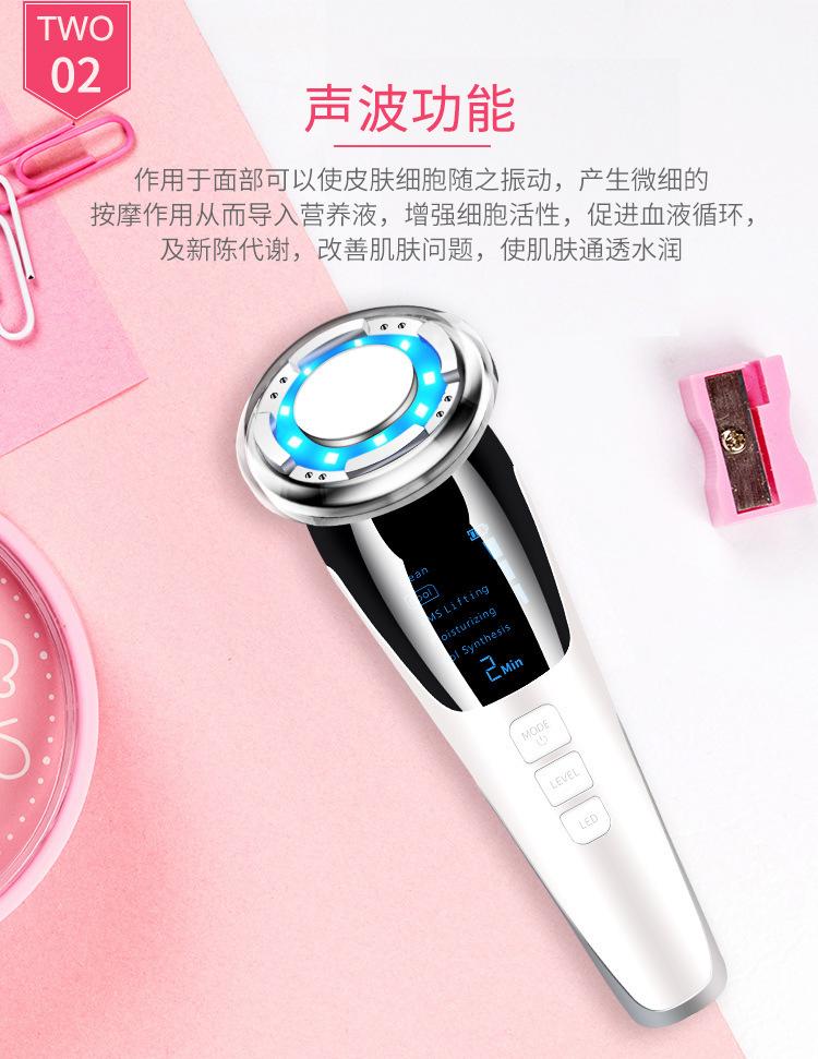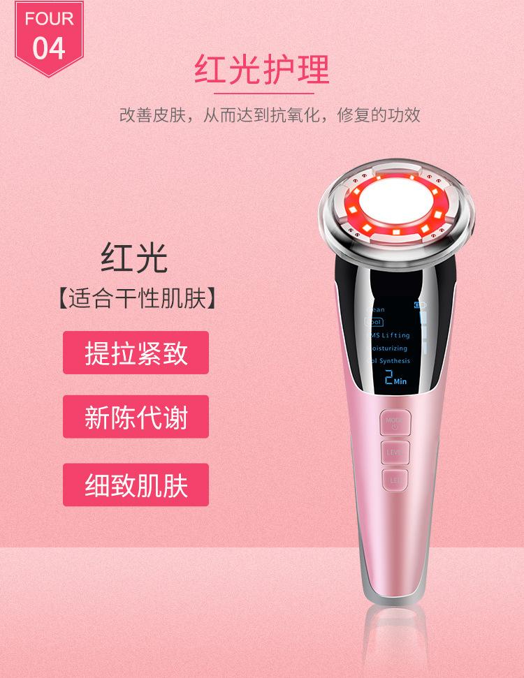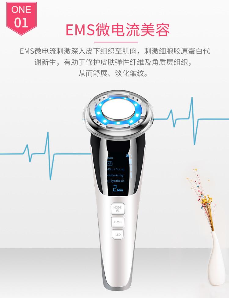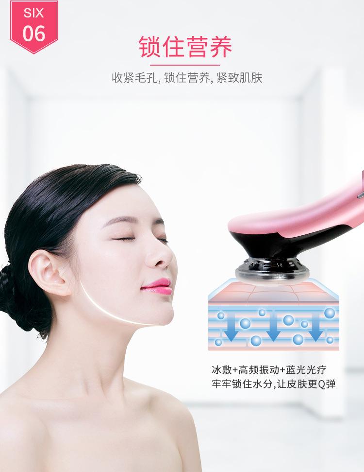 Modo 5: Clarear linhas e rugas (luz colorida + vibração + sensação de gelo + ajuste de microcorrente) 2 minutos