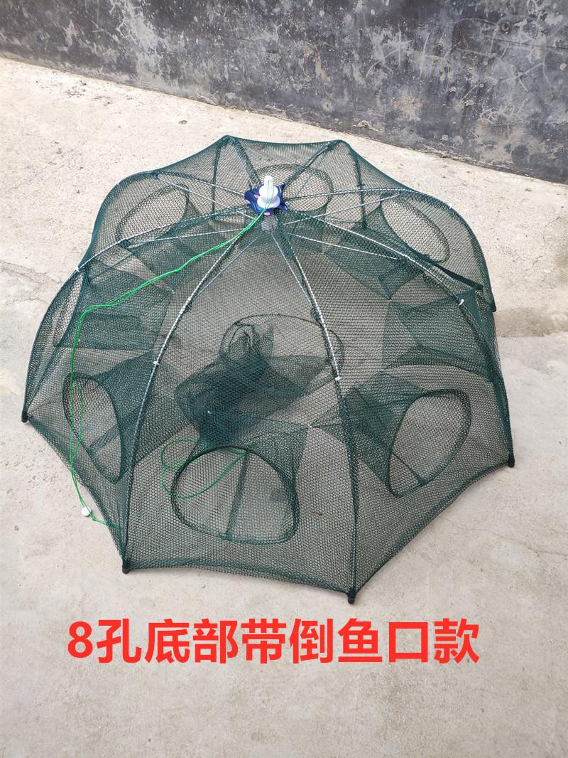 A rede de pesca tipo guarda-chuva é fácil de operar, sem instalação e fácil de usar! Ela tem uma estrutura simples, é feita de malha elástica espessada e tem uma estrutura espessada (2,8#). A versão atualizada da rede de pesca é fácil de instalar, assim como segurar um guarda-chuva, com um empurrão e um puxão, eliminando o tedioso processo de instalação e entrada de peixe reforçada, que abre automaticamente para pegar peixes quando a água entra.
