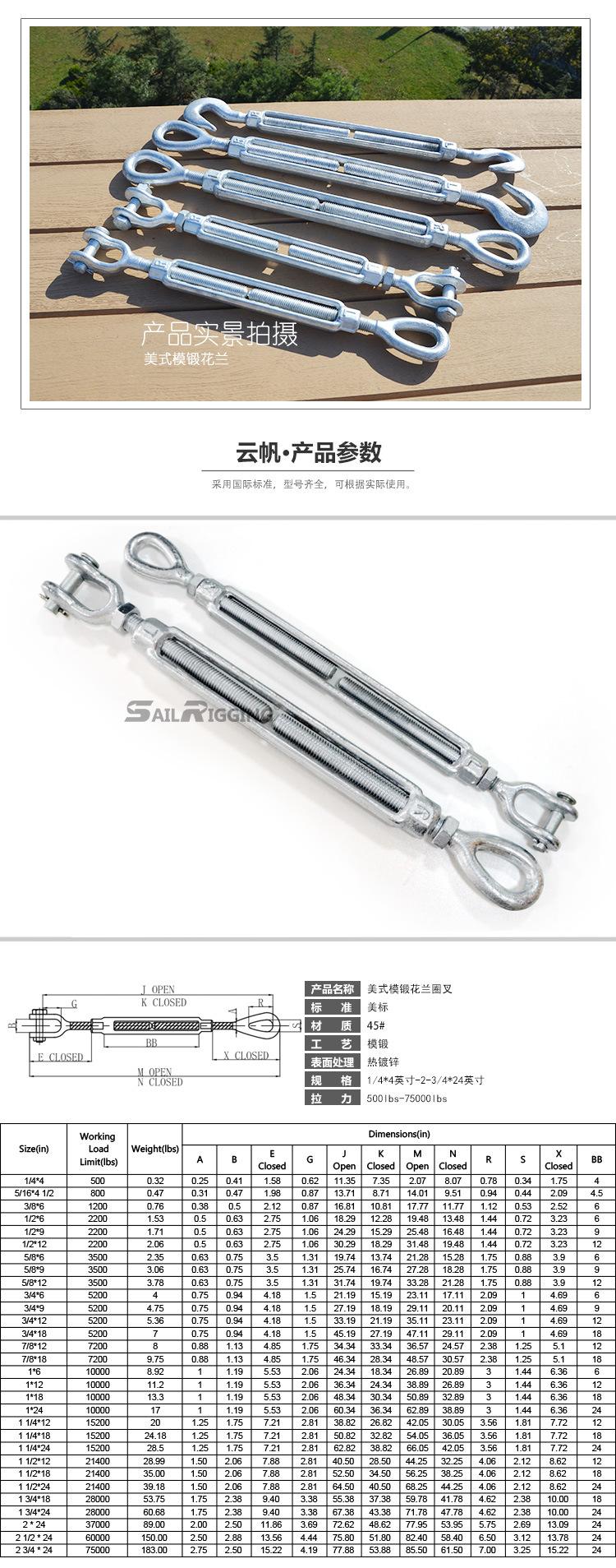 Qingdao Yunfan Rigging lleva más de 20 años dedicado a la investigación y el desarrollo de aparejos, y sus productos son ampliamente utilizados. Seleccionamos materias primas Laigang, tecnología avanzada y diversas especificaciones de producto. Hemos obtenido la certificación del sistema de calidad y más de 10 estándares, y ofrecemos procesamiento personalizado según planos. Ofrecemos diversas especificaciones y modelos de grilletes, ganchos, anillas, tensores, aparejos tensados, abrazaderas, etc.