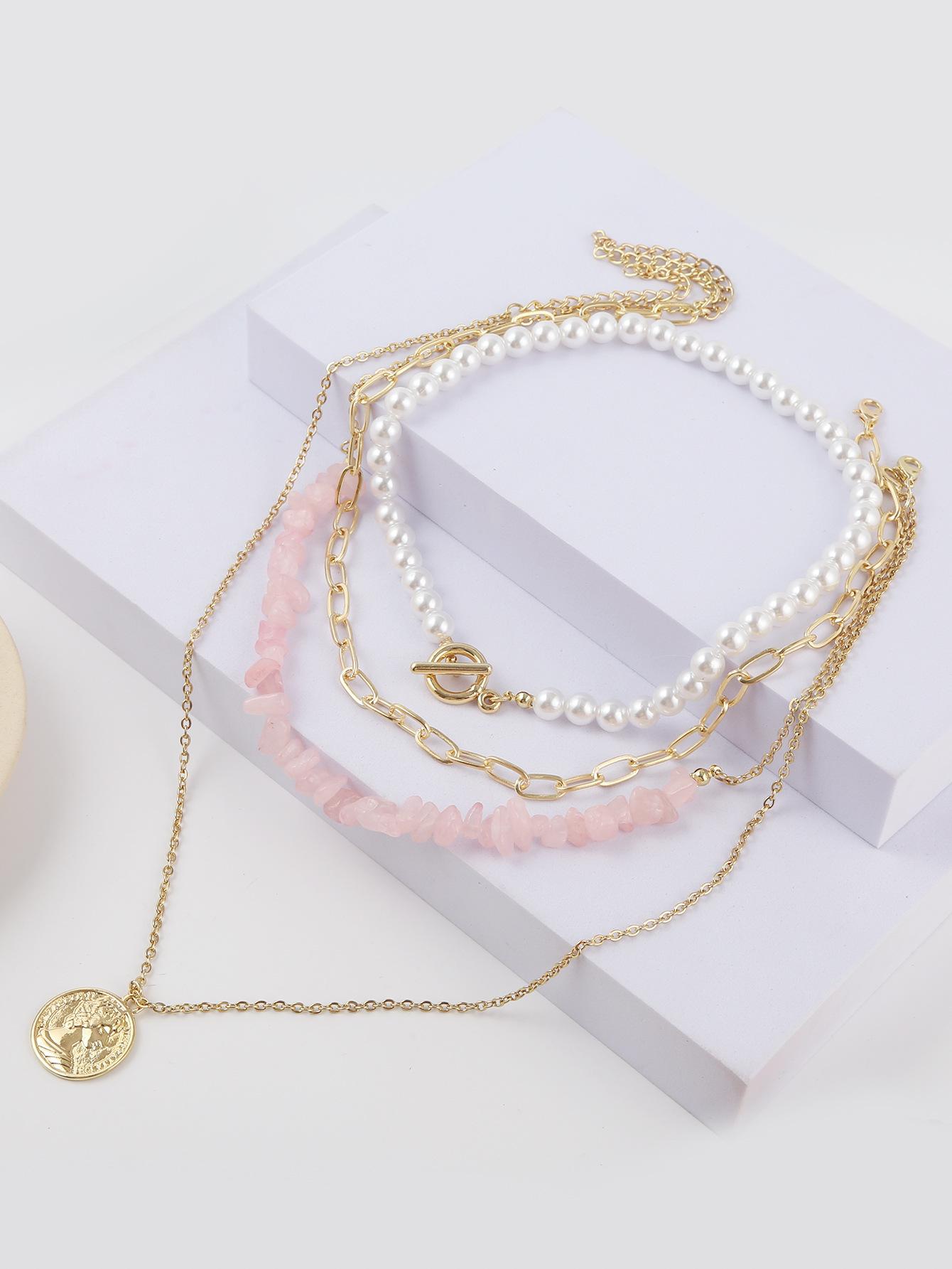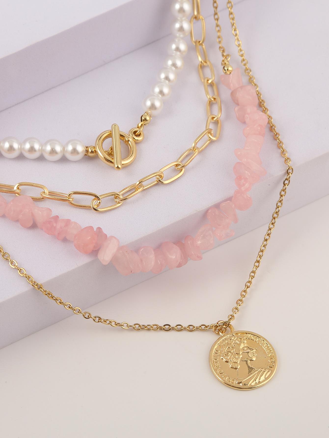 ⑥N2106-23 Cadena Sencilla de Piedra Rosa