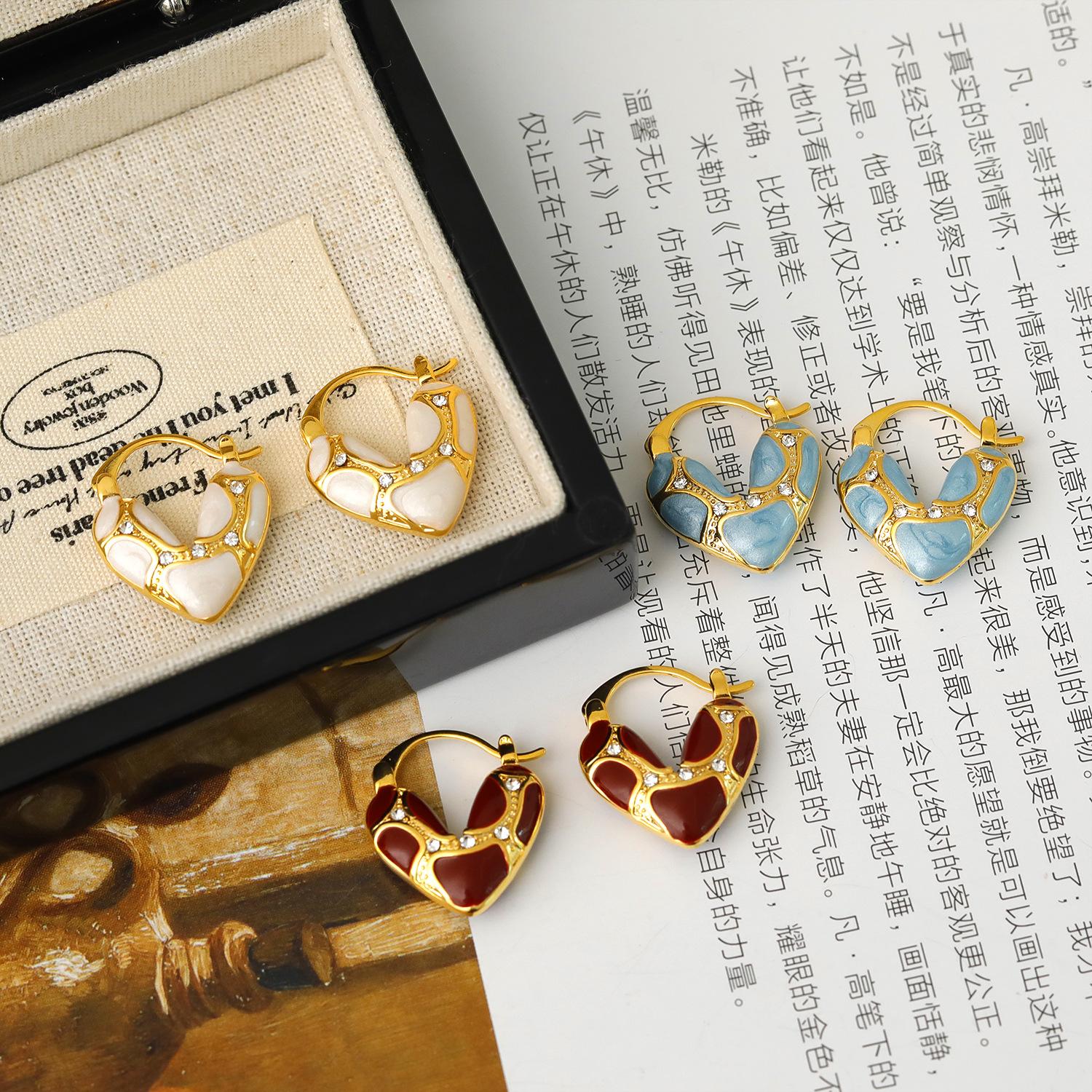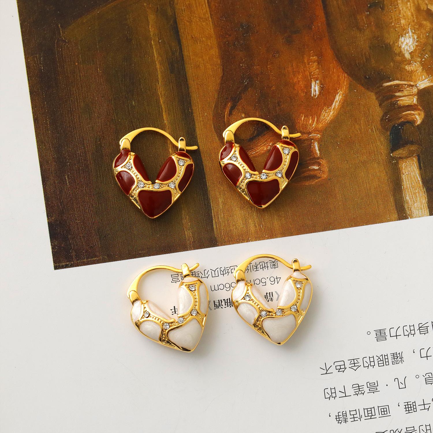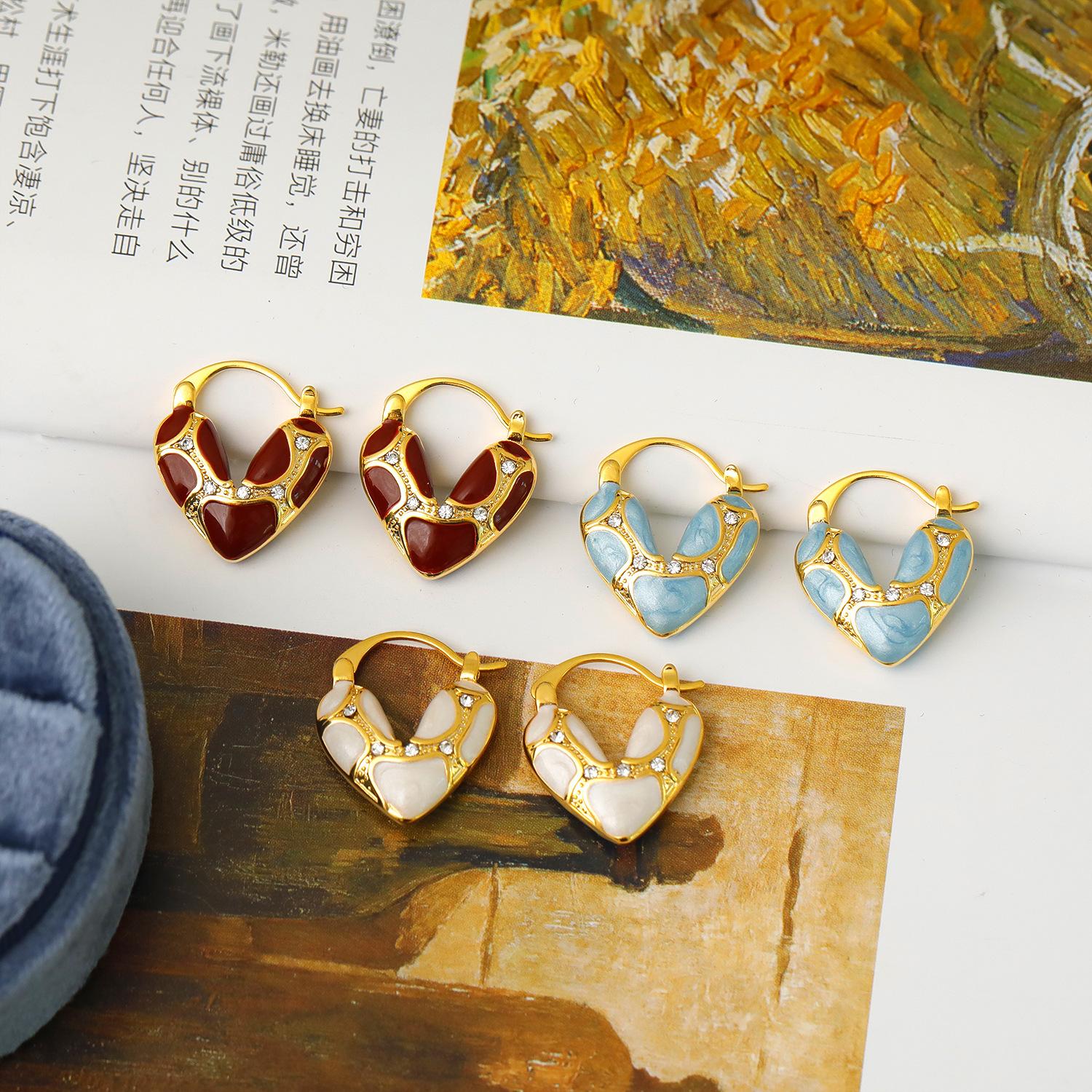 Nome do Produto: Versão coreana de verão de brincos de zircônia em forma de coração com gota de óleo de metal