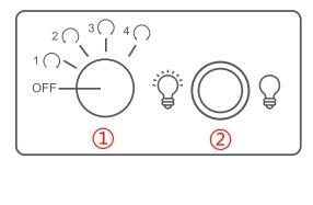 ①Interruptor de ajuste de cinco velocidades ②Interruptor de Luz Ambiente LED