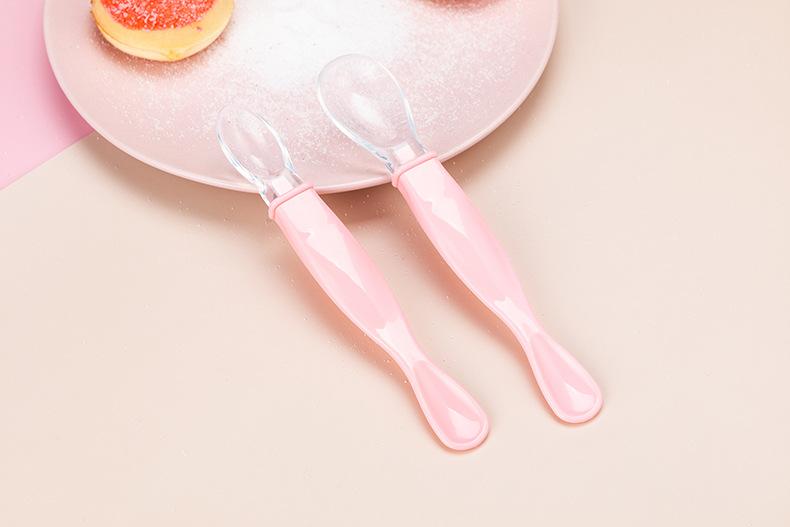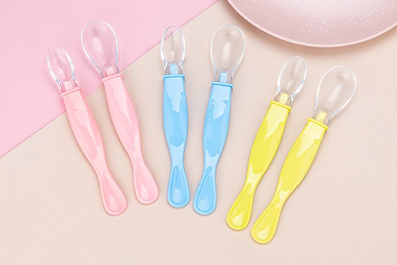 Nombre del producto: Cuchara de silicona de nuevo tamaño para bebé, cuchara de comida para bebé con cabeza suave, cuchara de silicona para bebé