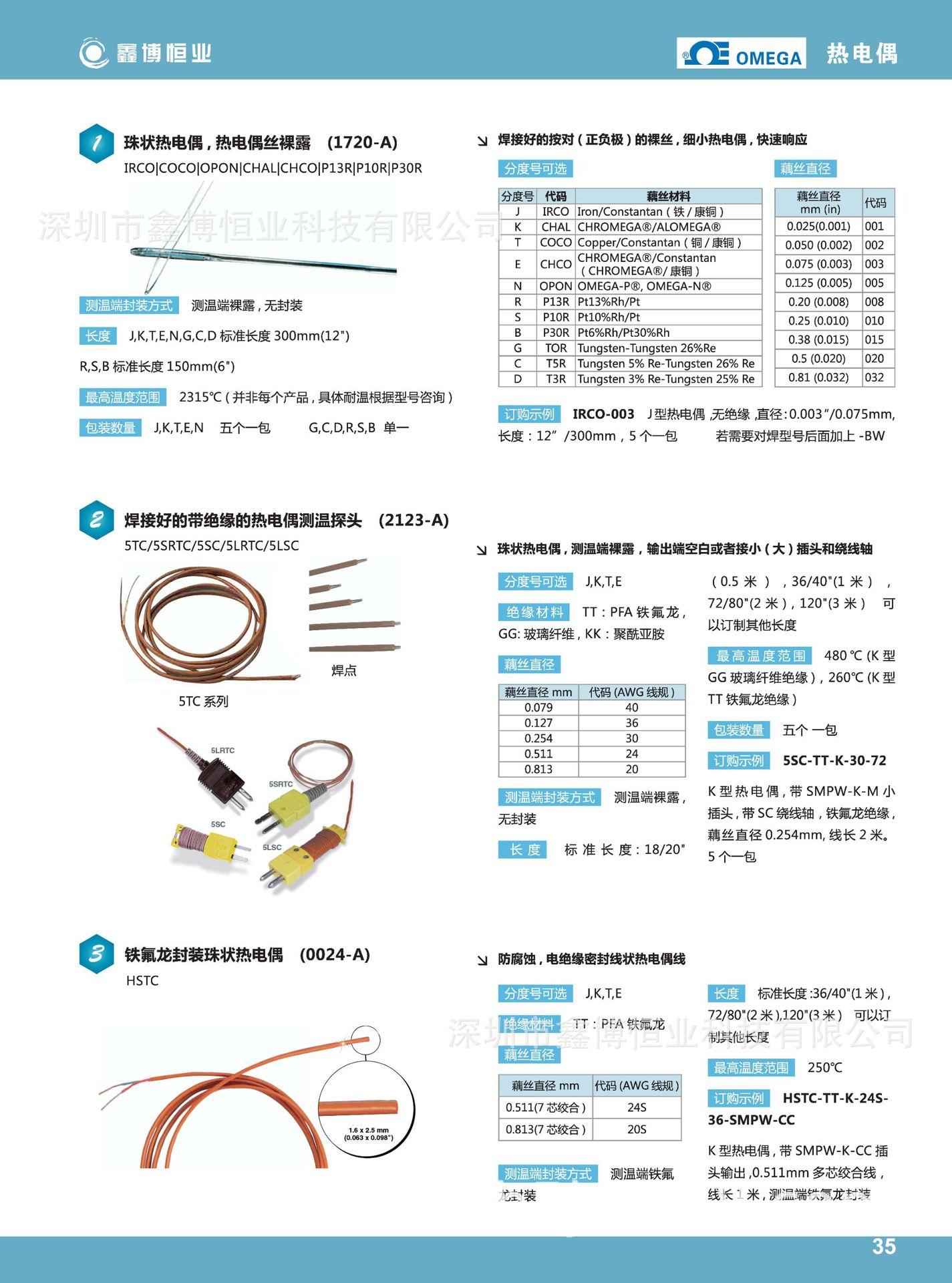 | SA1-T-SC | Termopar tipo T, 36" de comprimento, conector, tampa de carretel, pacote com 5 |