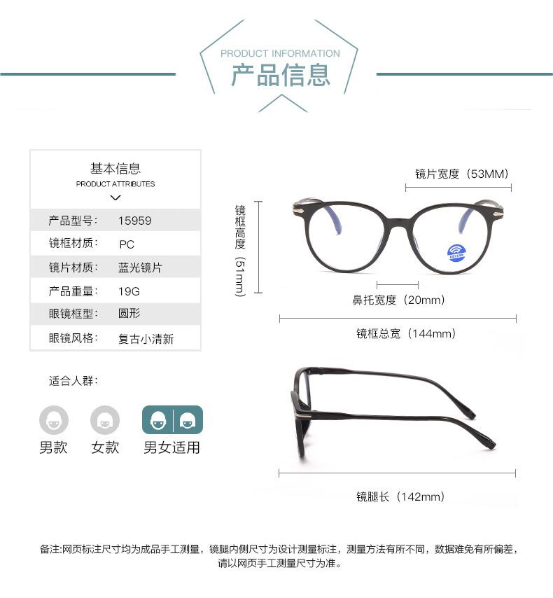 4. Cuando no use gafas, envuélvalas con un paño y guárdelas en su estuche. Si las guarda temporalmente, coloque la parte convexa de las gafas hacia arriba para evitar que las lentes se rayen fácilmente. Evite el contacto con productos corrosivos como repelentes de insectos, productos de limpieza para inodoros, cosméticos, laca para el cabello, medicamentos, etc., y evite la exposición prolongada a la luz solar directa y a altas temperaturas (superiores a 60 °C). Esto puede causar el deterioro, la decoloración, etc. de las lentes y la montura.