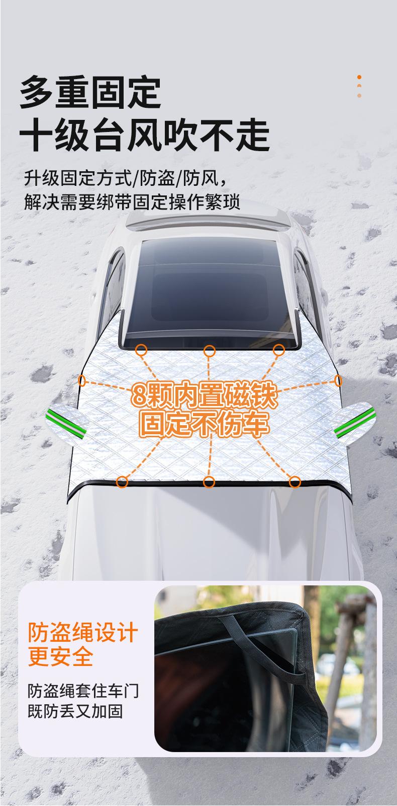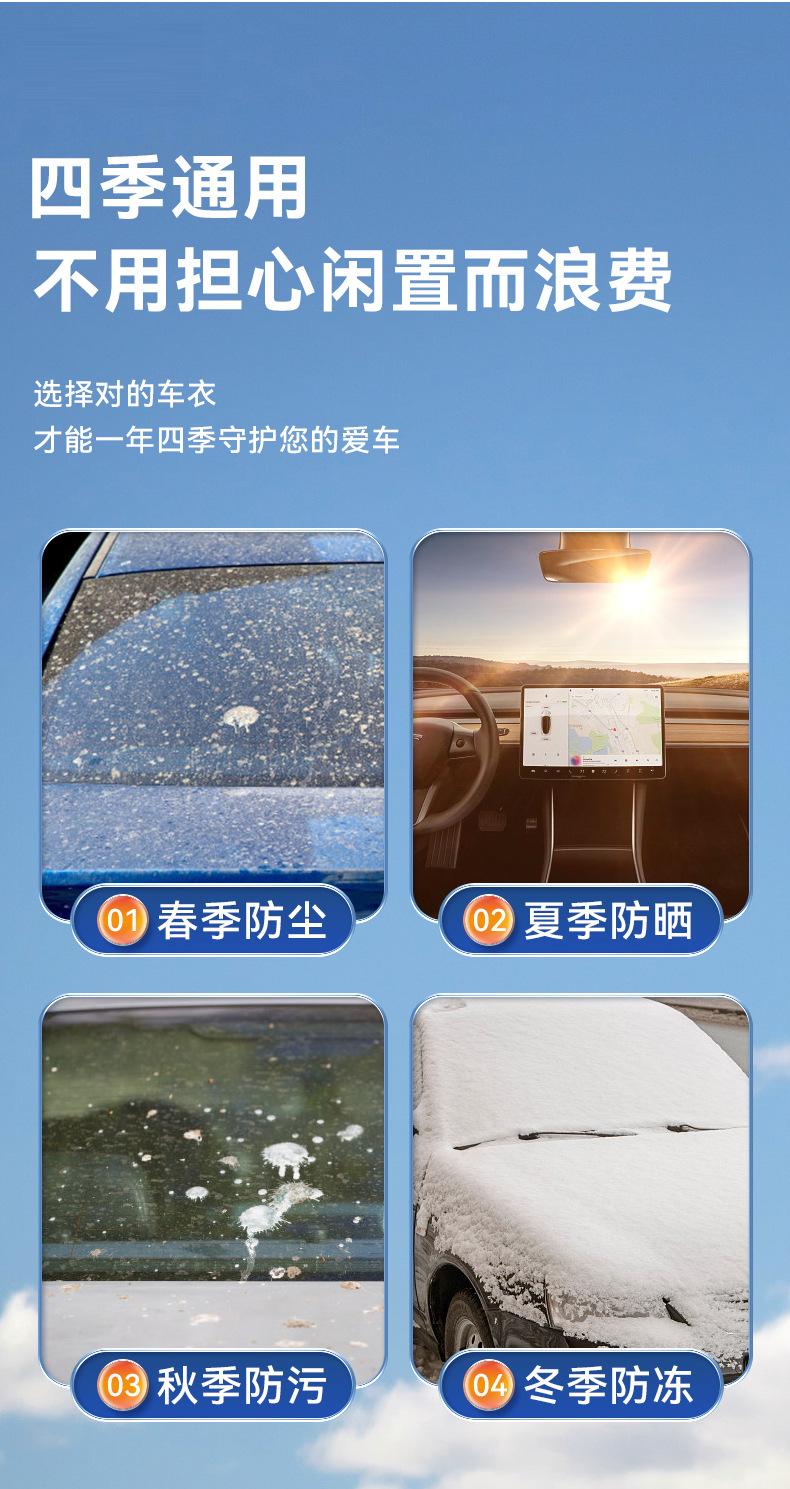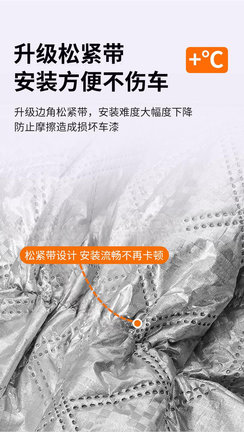 1. Feito de tecido Oxford, não danifica a pintura do carro, é à prova de sol, isolante térmico, à prova de chuva, à prova de neve, à prova de vento, anti-riscos e tem forte resistência à tração.