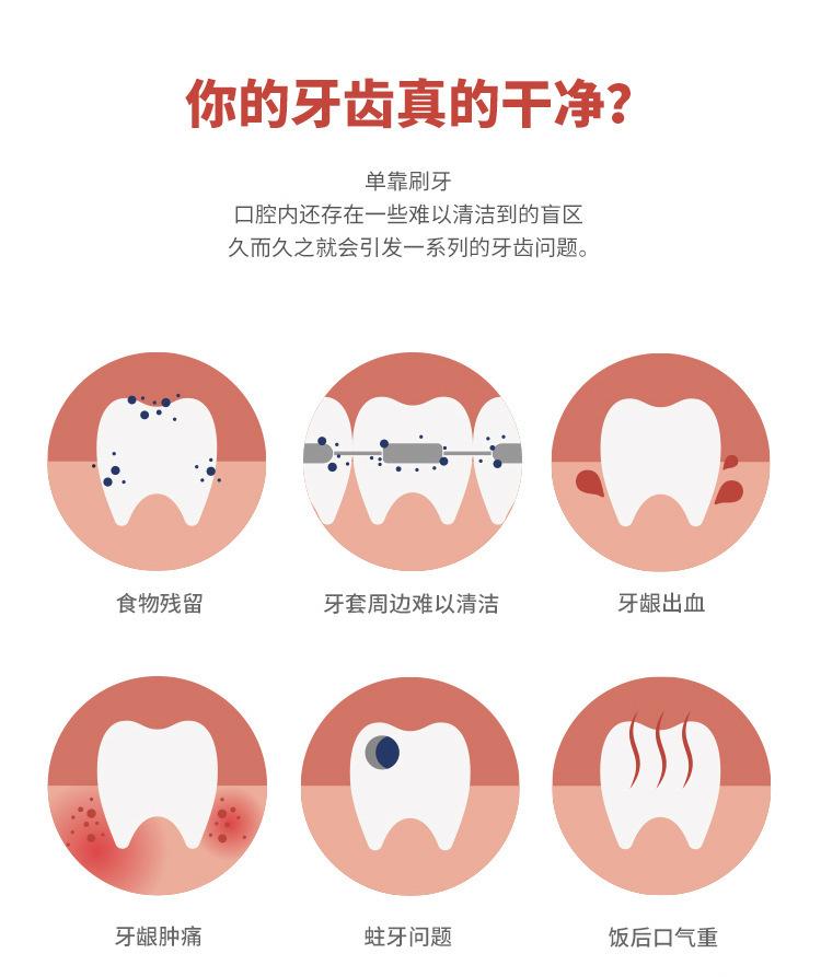 | Dicas gentis | Ao usar este produto, você pode sentir coceira ou sangramento leve. Isso ocorre porque suas gengivas não estão acostumadas a esse tipo de limpeza. Ou pode ser um sintoma temporário causado por inflamação das gengivas devido à gengiva não ter sido completamente limpa. Esse fenômeno geralmente desaparece dentro de 1 a 2 semanas. |