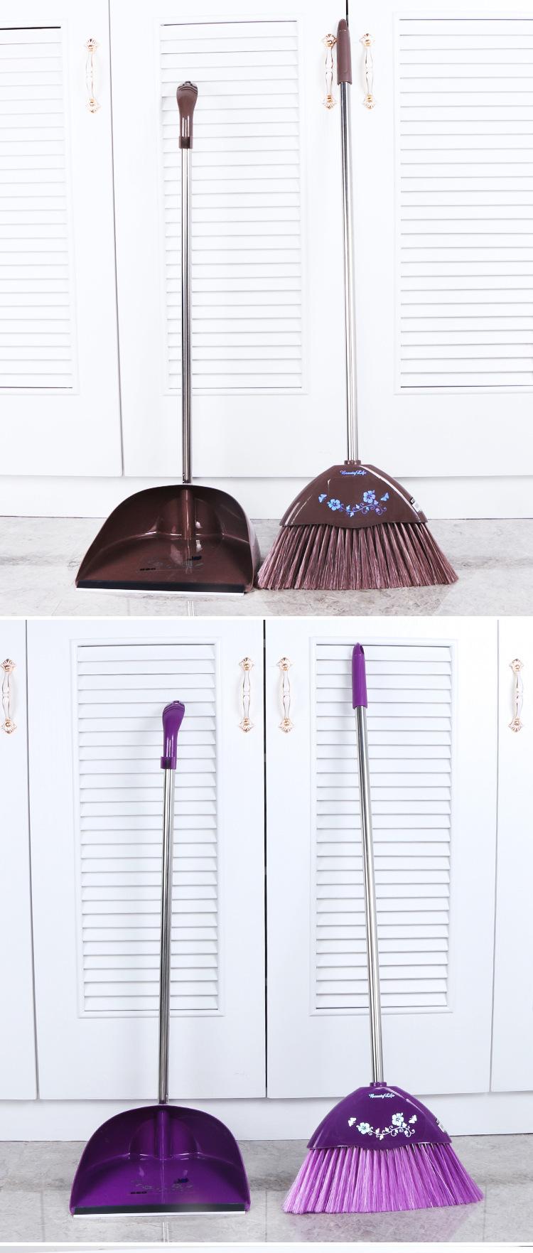 Conjunto de vassoura de plástico e pá de lixo, combinação de vassoura de cerdas macias para piso interno