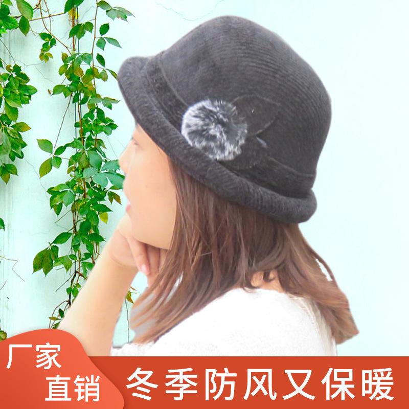 Sombrero de sol para mujer de otoño e invierno, nuevo sombrero de lana versátil, sombrero de pescador de cuenca para madre de mediana edad y anciana, venta al por mayor