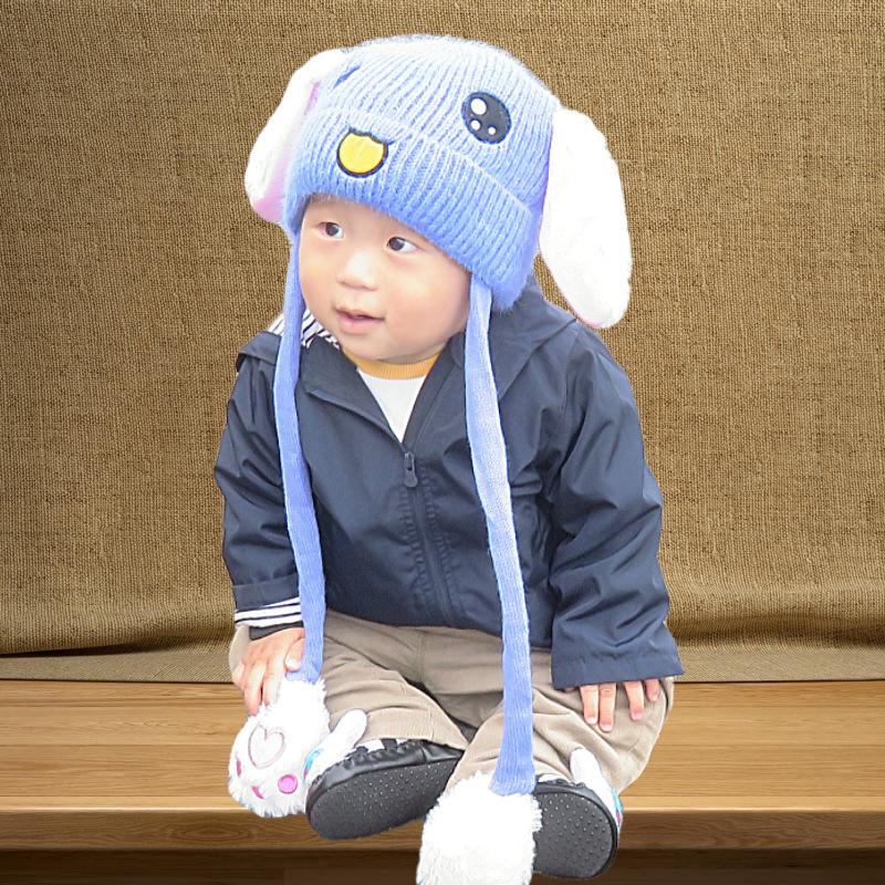 Sombrero de punto de felpa para niños de dibujos animados confeccionado, sombrero de bebé de otoño e invierno, nuevo estilo vibrato mismo estilo orejas moviéndose sombrero de lana