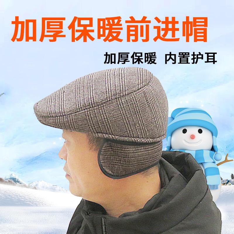 Otoño e invierno nuevo boina de lana con orejeras para mediana edad, cuadros británicos, casual, gorra de pico de pato, gorra de visera para hombre, venta al por mayor