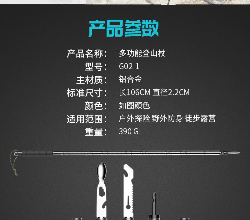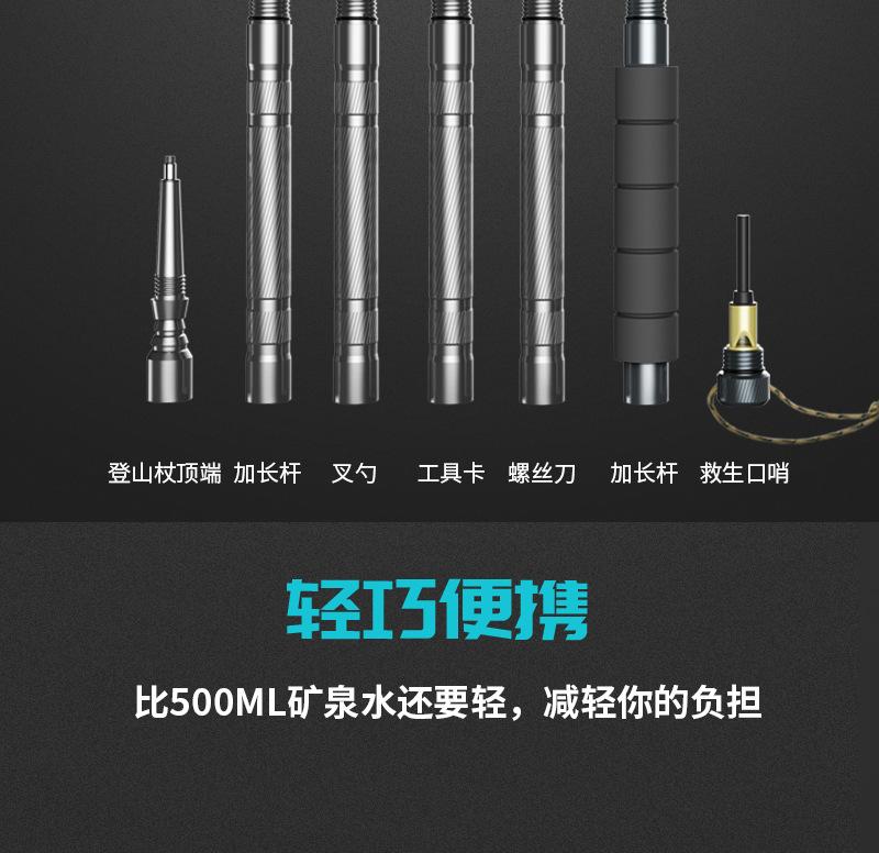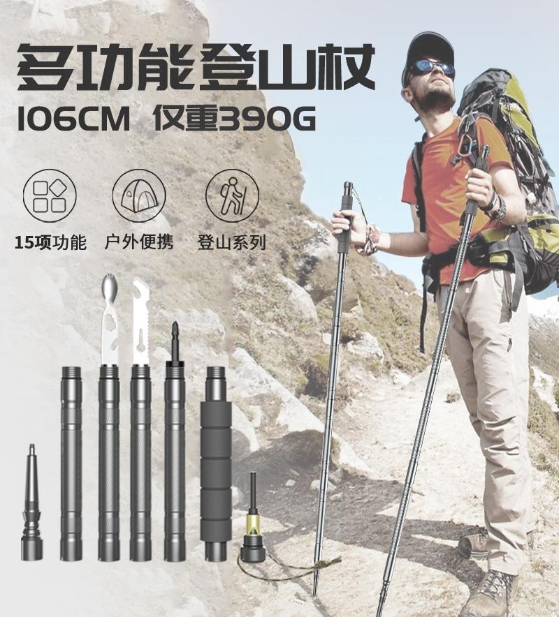 Bastão de caminhada multifuncional, bastão de autodefesa para áreas externas, caminhadas, portátil, ultraleve, antiderrapante, retrátil, bengala de escalada