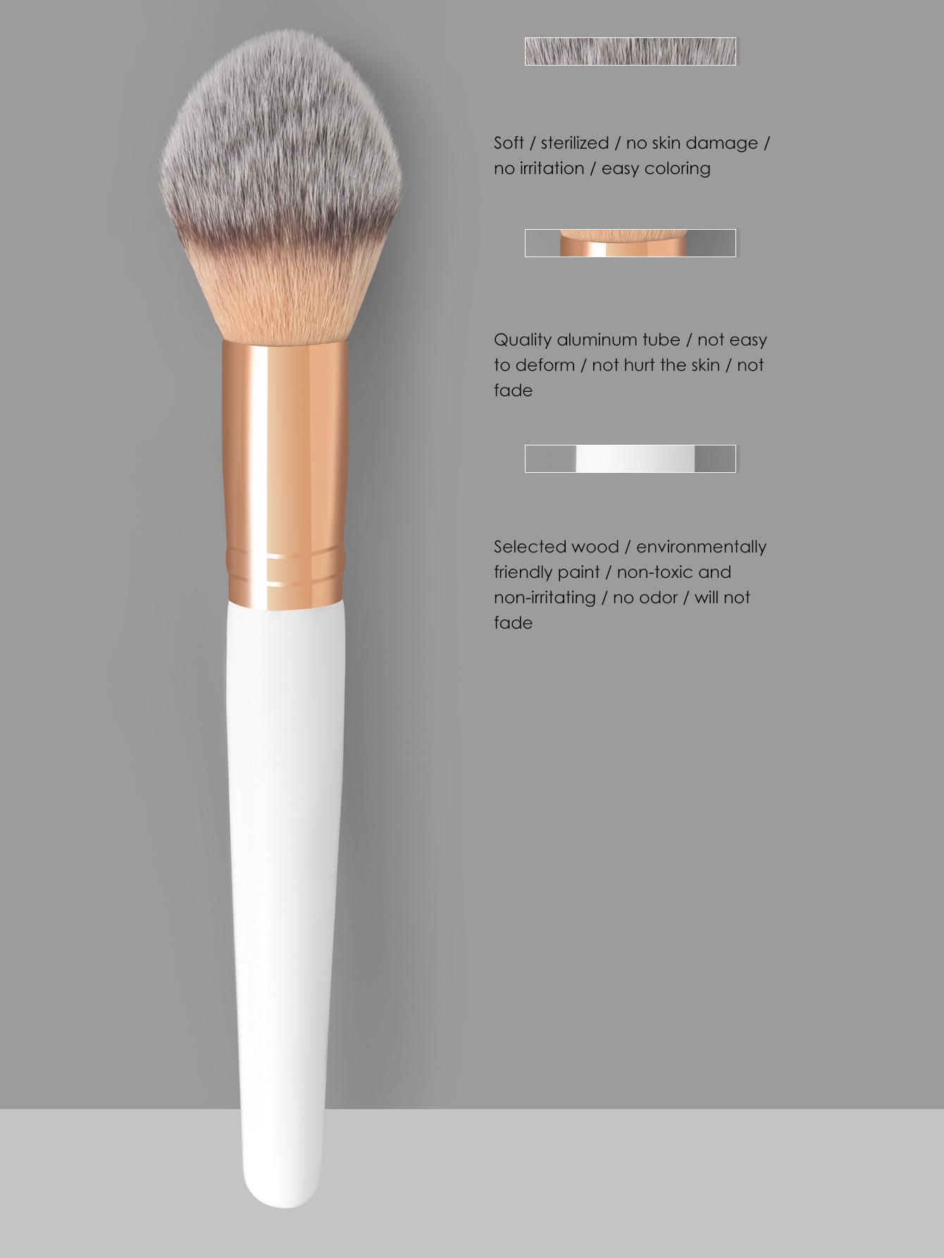 | Brocha de maquillaje de alta calidad de tubo único de oro blanco para polvo suelto con pelo de tres colores, regalo popular para uso doméstico | YF23091601 | alto | OPP | Mango de madera/Tubo de aluminio/Lana de nailon | 19*1.6*1.6 | 30 |