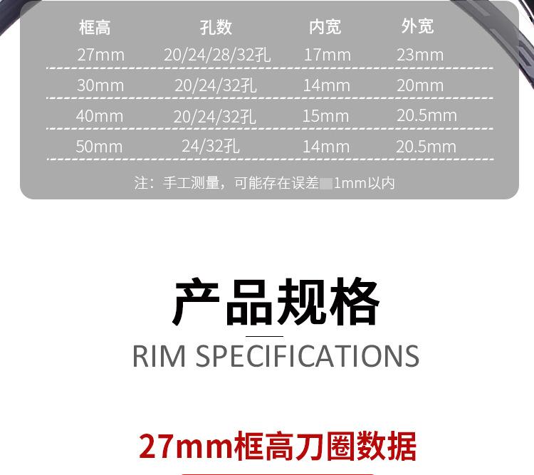 El rin de 27 mm de altura de perfil es adecuado para instalar neumáticos 700X23/25/28/32/35C