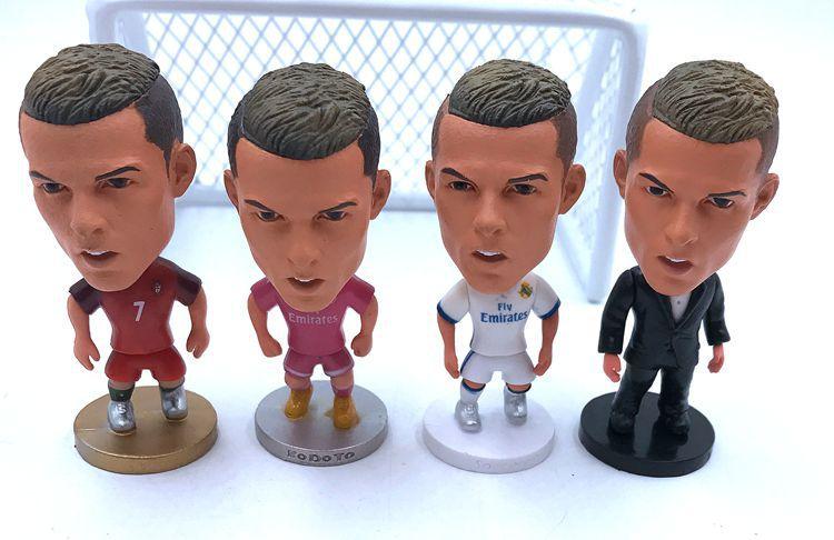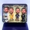 O conjunto inclui: 4 bonecas + caixa de ferro + desenho de arame + pequena bola de futebol