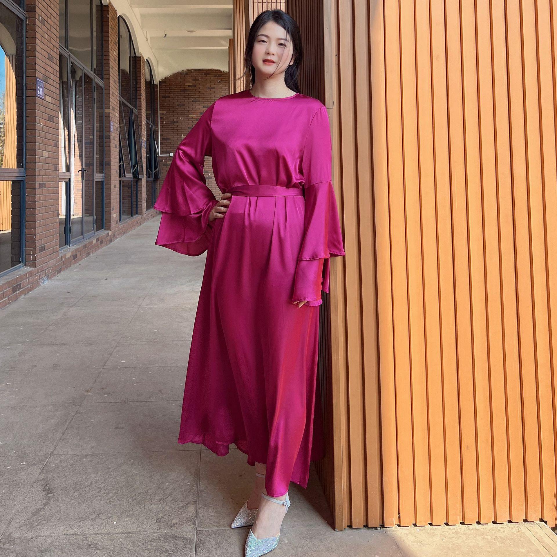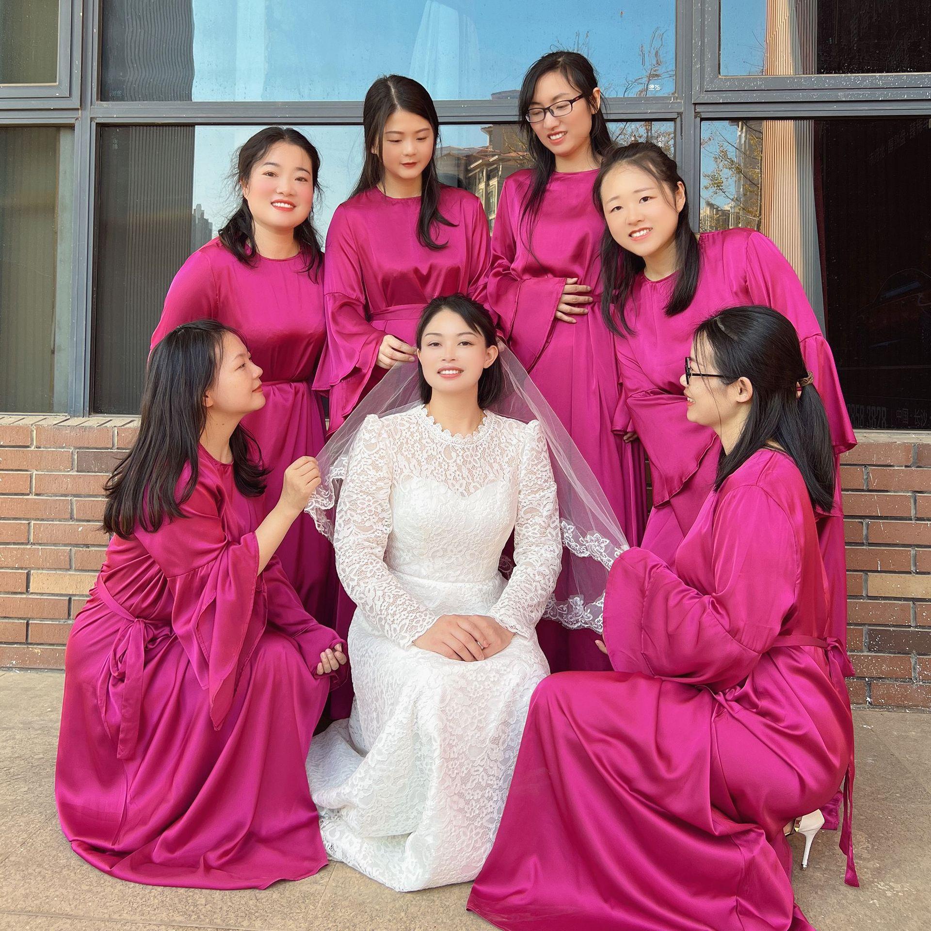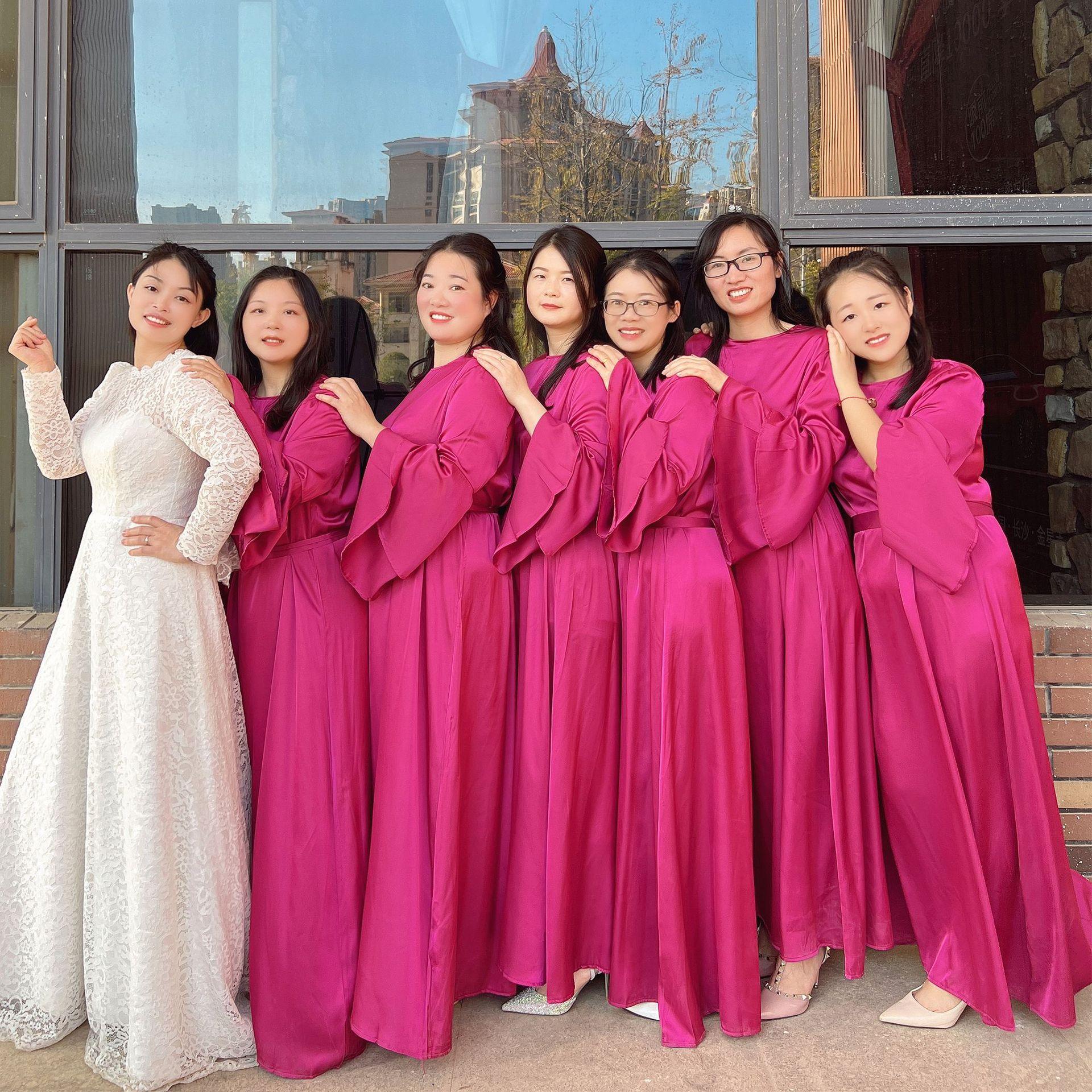 Vestido de dama de honor de boda de manga trompeta de doble capa de color sólido 2023Loriya