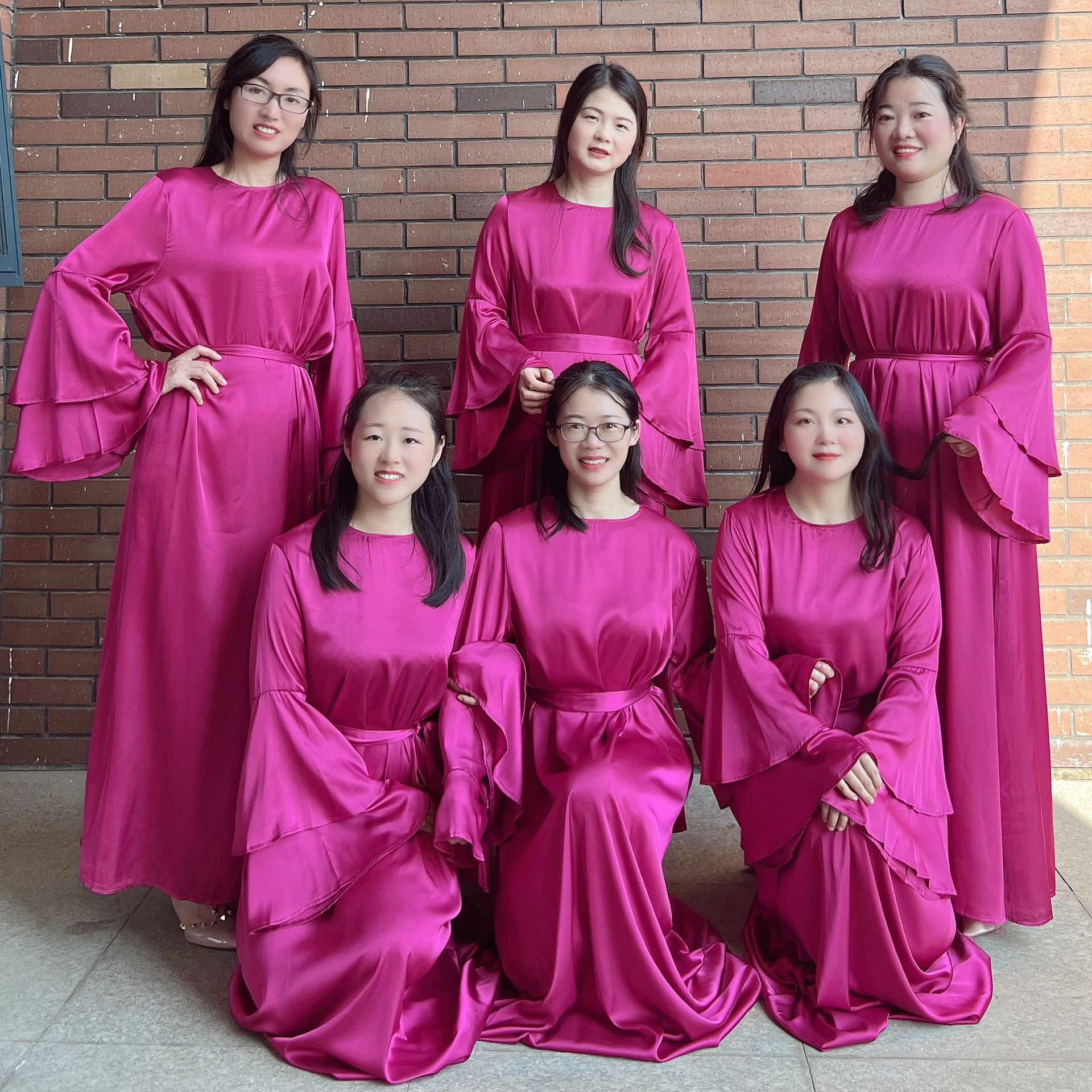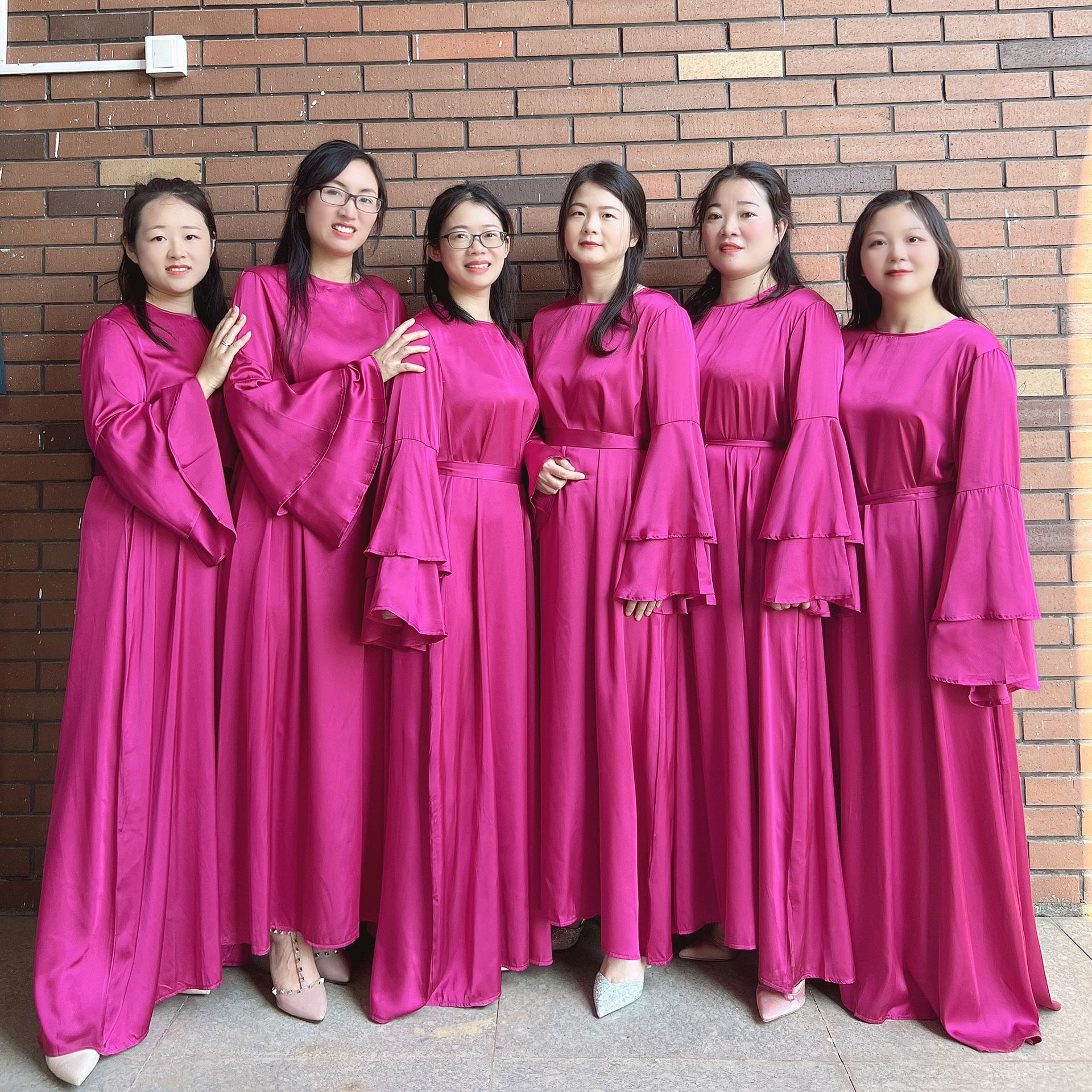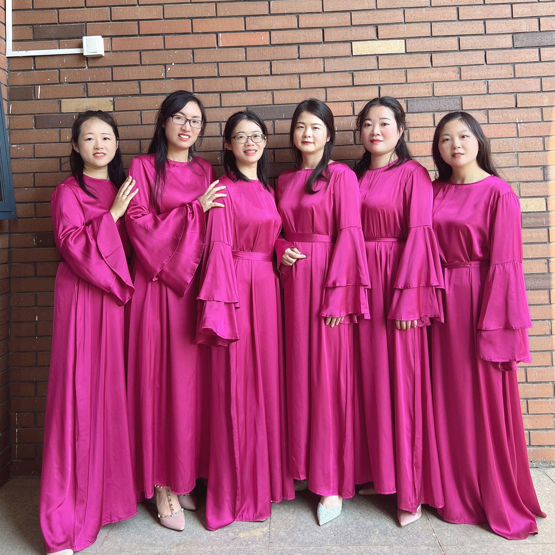 Vestido de dama de honor de boda de manga trompeta de doble capa de color sólido 2023Loriya
