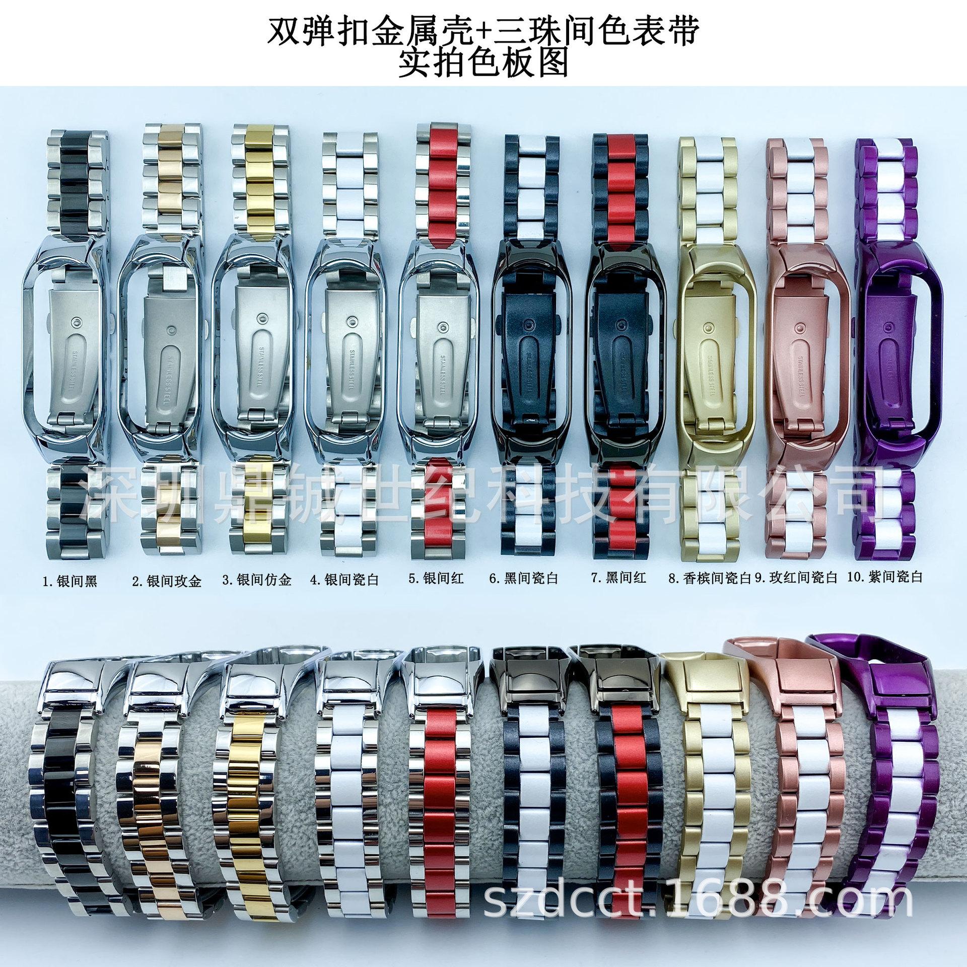 Xiaomi Mi Band 503 Capa protetora de metal com fivela dupla + série de pulseiras coloridas entrelaçadas de três contas