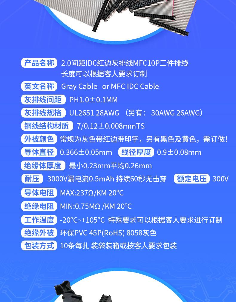 Nome do Produto :2.0espaçamentoCDICabo cinza com borda vermelhaMFC40PFiação de três peças O comprimento pode ser personalizado de acordo com as necessidades do cliente