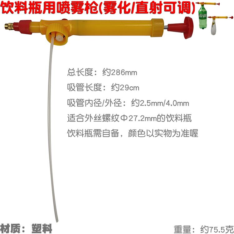 O bico giratório pode ajustar a saída de água (aperte-o para o estado de pulverização, afrouxe-o para se tornar um estado de coluna de água e pode ser ajustado à vontade). Ele tem uma estrutura simples, volume de pulverização grande e uniforme e é leve. Mais importante, é conveniente. Adicione uma garrafa de Coca-Cola para torná-lo um pulverizador, e a capacidade pode variar dependendo da garrafa de Coca-Cola que você escolher. É amplamente utilizado na proteção ambiental urbana, plantio de flores em casa, controle de pragas de culturas, etc.