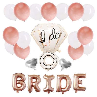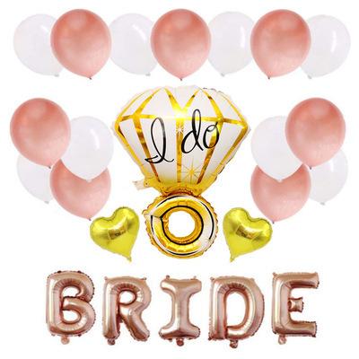 El paquete incluye globos de látex de 12 pulgadas (10 en blanco), 10 en oro rosa, 1 anillo de diamante (2 en forma de corazón de 18 pulgadas), 1 juego de BRIDE