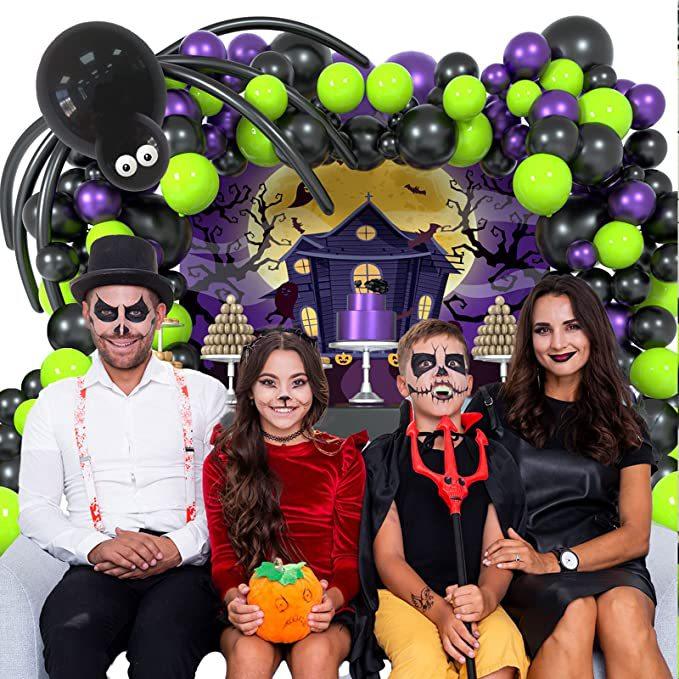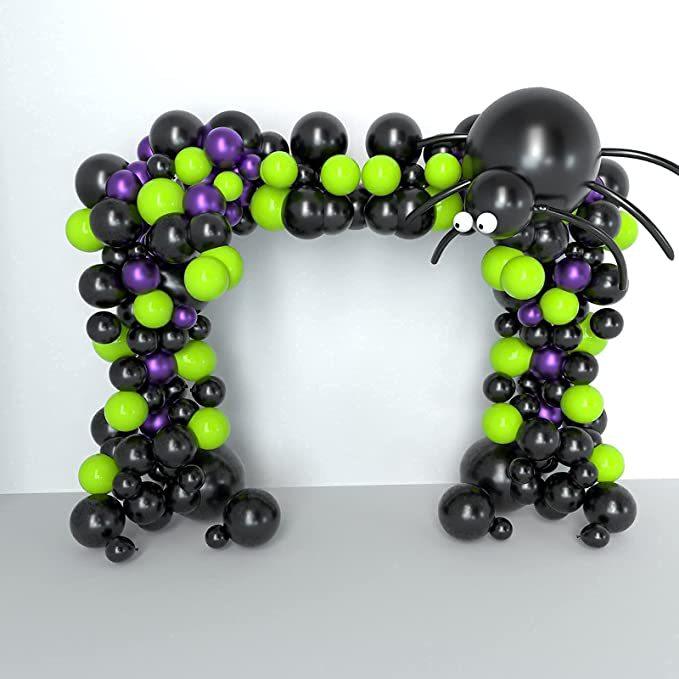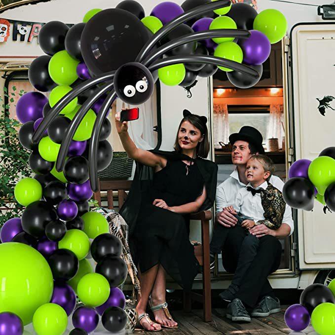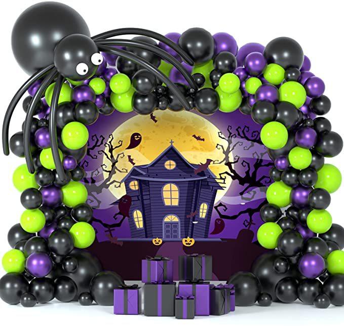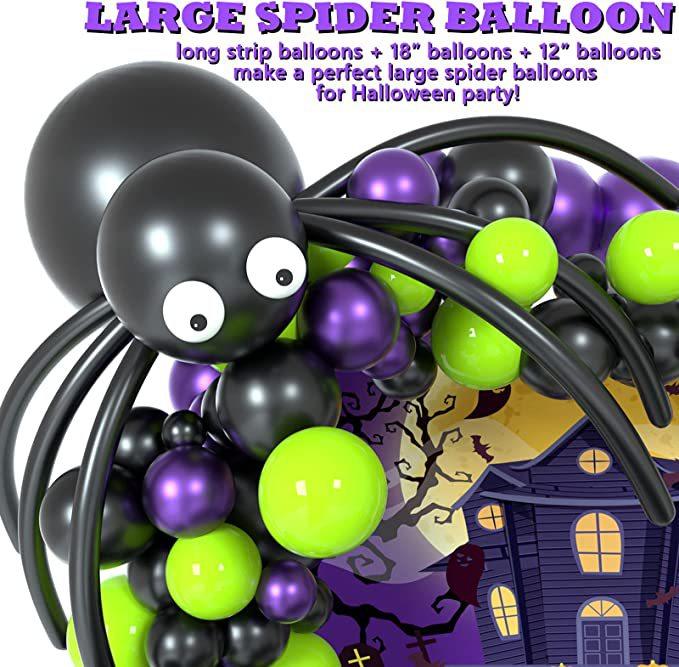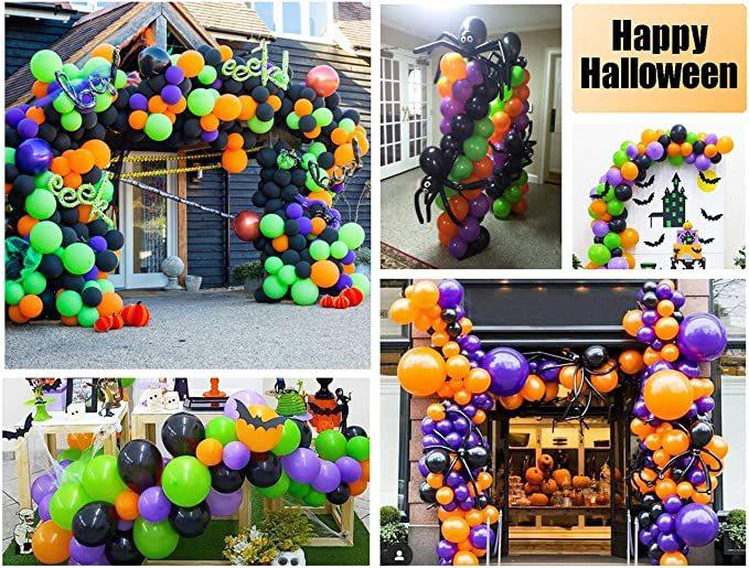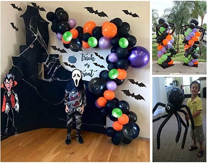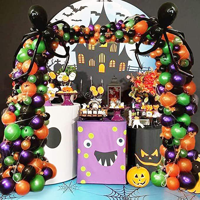 Kit de arco de guirlanda de balões de Halloween com teia de aranha de Halloween e morcegos, balões de aranha de balão pretos, laranja, verdes e roxos para decorações de festa de Halloween |