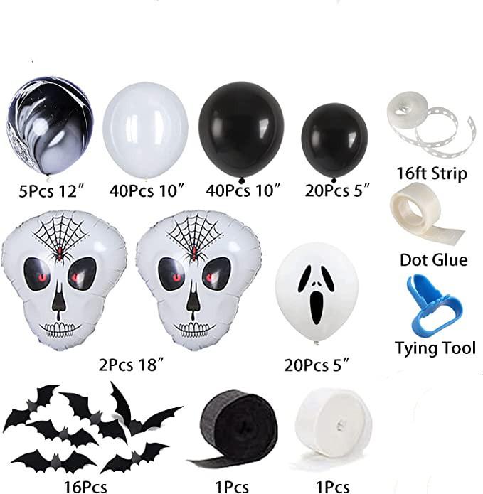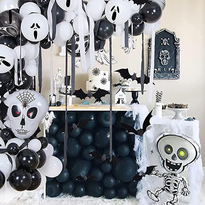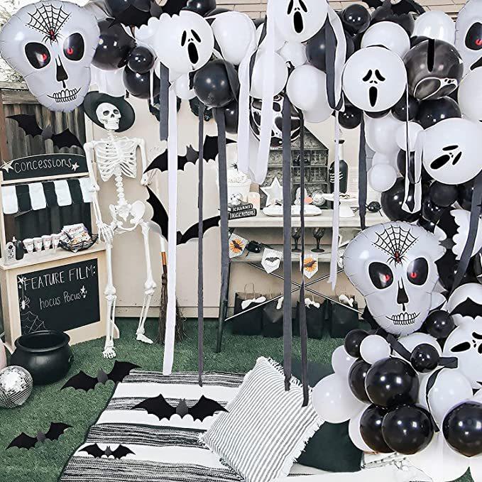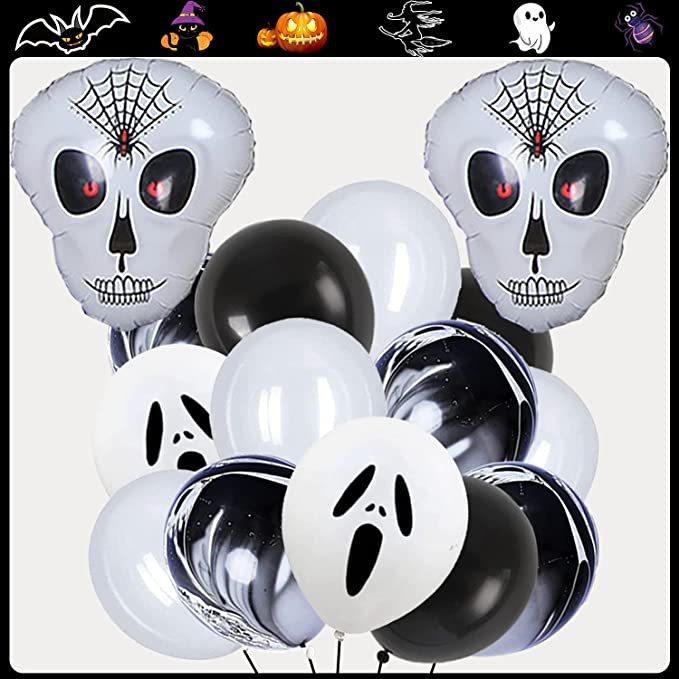Balões de decoração para festa de Halloween 145 peças e balões de papel alumínio com caveira assustadora para decorações de aniversário de Halloween internas e externas Tamanho do pacote 9,02 x 2,69 x 2,28 cm Peso do item 372 g