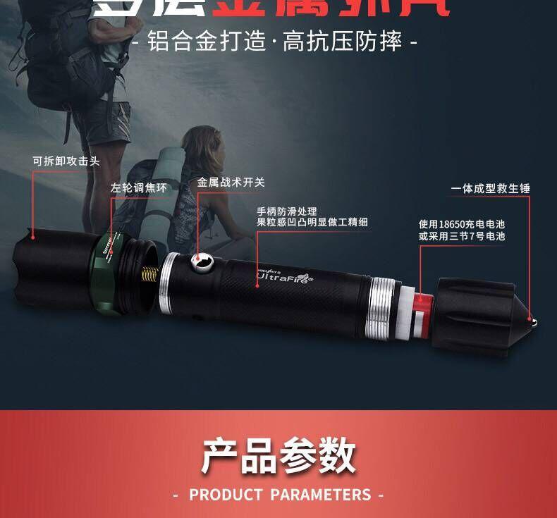 Vantagens desta lanterna: tamanho pequeno, peso leve, fácil de transportar, resistente e durável, com função para todos os climas, luz forte, longa distância de irradiação direta, opções de luz forte e fraca, luz forte - tempo distante, luz baixa - luz próxima , emergência ——Flash explosivo. A liga de óxido de titânio na parte superior possui um design reforçado de ataque único, que pode substituir o martelo de segurança para quebrar a janela do carro e escapar em caso de emergência.