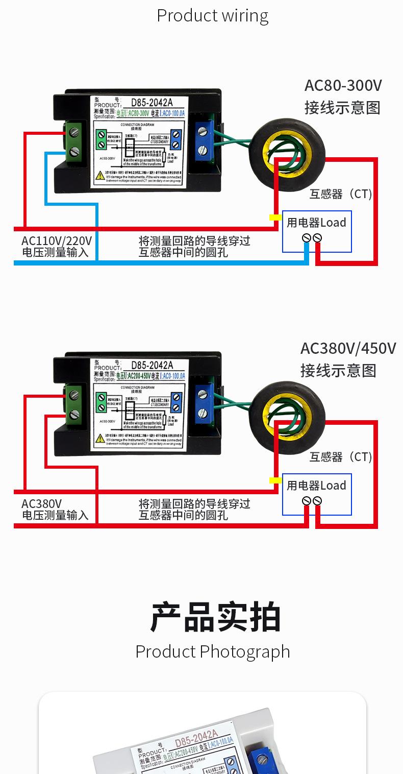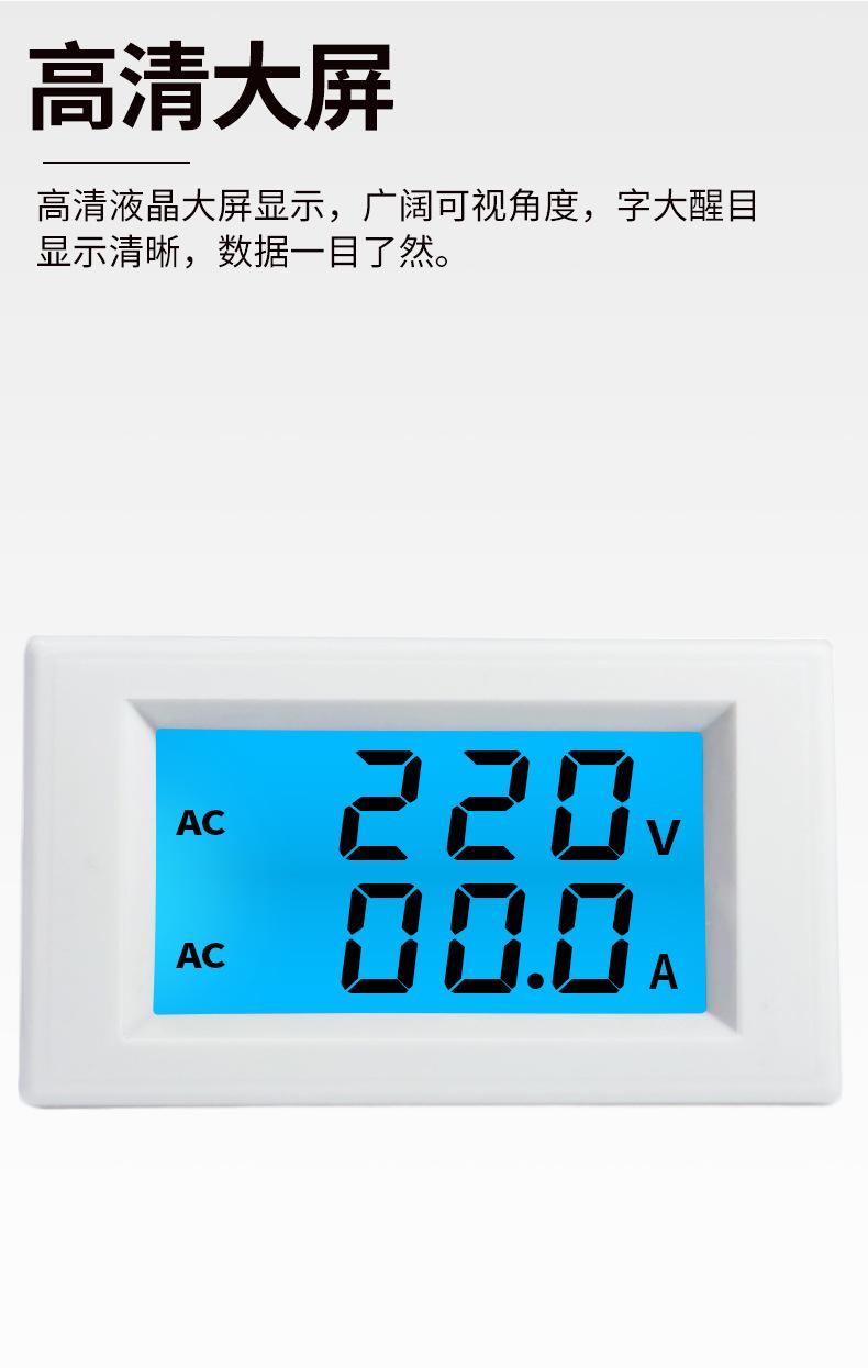2. Faixa de medição: Tensão AC: AC80-300V 200-450V, Corrente AC: AC0,1-100A 1,0-199,9A [Nota: O medidor é equipado aleatoriamente com um transformador de corrente de precisão em miniatura, selecione 100A para medir corrente entre 0,1-100A, a precisão da medição permanece inalterada, selecione 200A para medir corrente acima de 100A, a precisão da medição permanece inalterada.]