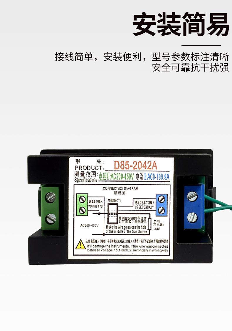 O medidor digital de tensão e corrente CA D85-2042A exibe a tensão CA e a corrente CA medidas no mesmo instrumento ao mesmo tempo. O instrumento não precisa adicionar fonte de alimentação de trabalho adicional e transformador CA (o instrumento é equipado com um pequeno transformador de precisão), e a medição é muito conveniente e precisa. É amplamente utilizado em automação de subestação, filtro de energia, temporizador, amplificador de áudio, caixa de distribuição, gabinete de distribuição, estabilizador de tensão, materiais didáticos, pequena caixa de distribuição doméstica, etc.Este medidor pode substituir diretamente o antigo medidor de corrente e tensão CA do tipo ponteiro 85L17/não há necessidade de alterar o tamanho original da abertura do painel)