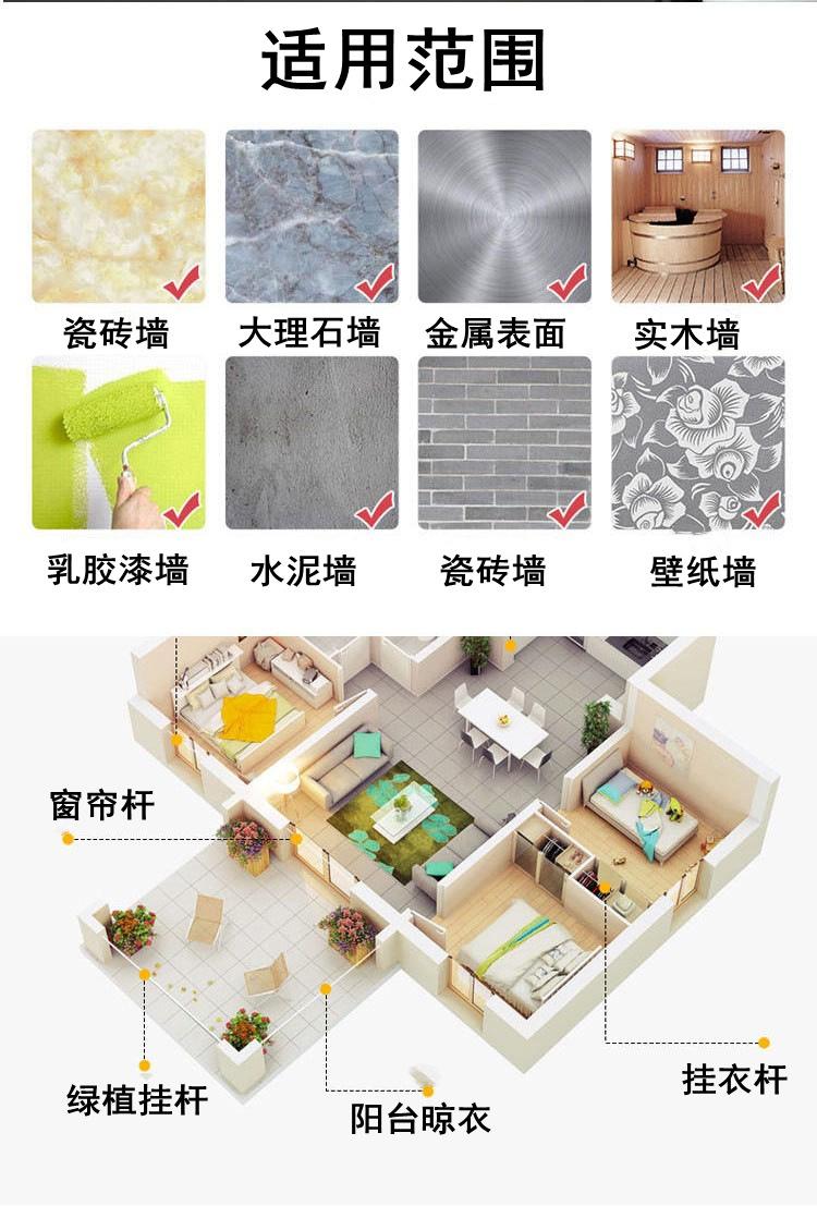 Nota: La prueba en la imagen anterior es solo para referencia y no representa el efecto real de soporte de carga. La capacidad de carga específica debe determinarse en función de la lisura de la pared y la longitud de la barra.