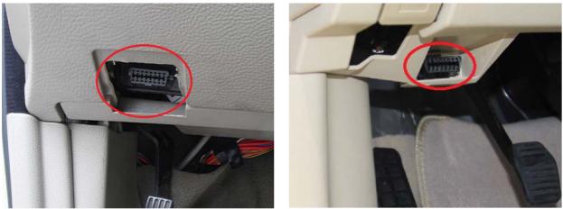 Instale o dispositivo na interface OBD do carro. Em geral, a porta OBD está localizada na cabine do motorista ou do passageiro, da borda do painel do lado do motorista até a borda de 300 mm. É fácil de tocar sentado no assento do motorista, o local preferido é dentro da área do posto de direção até a linha central do veículo.