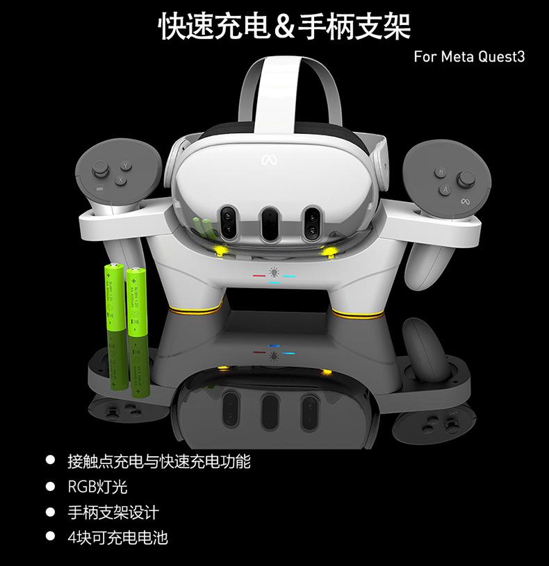 Meta quest 3 gafas VR mango base de carga por contacto magnético carga rápida j con luces RGB coloridas y baterías gratuitas