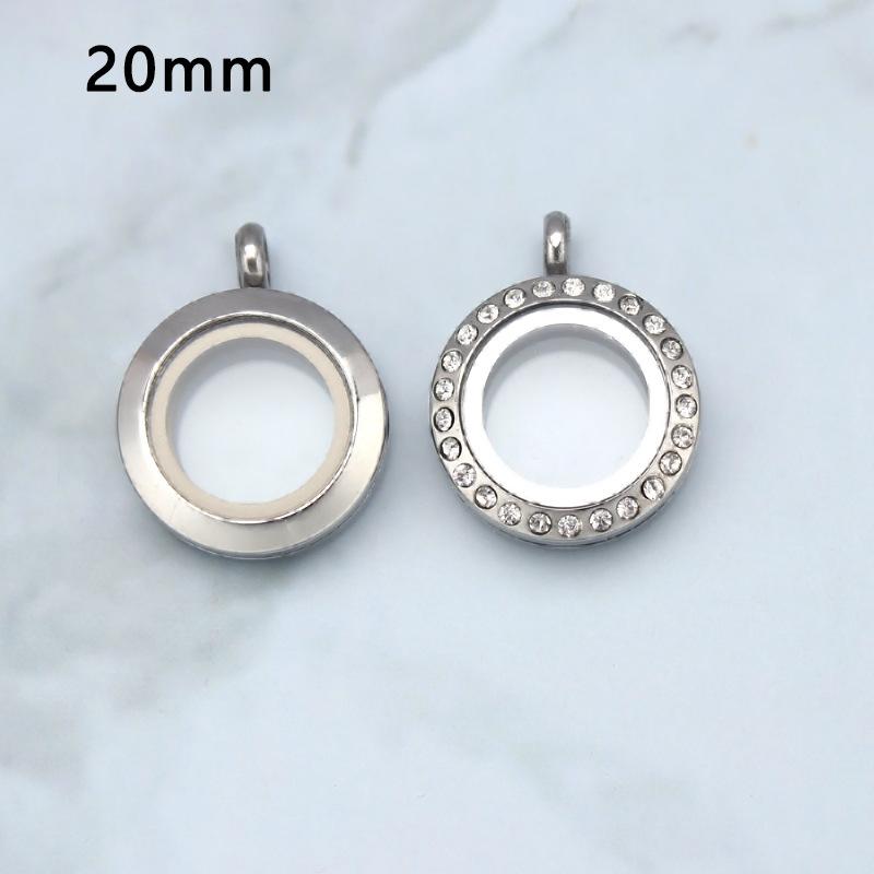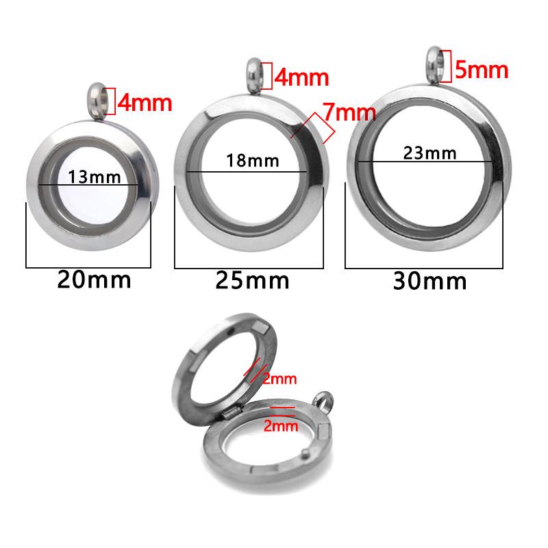 Caixa de vidro redonda dupla face de aço inoxidável de vários tamanhos Gawu caixa de fotos Shurangama mantra pingente colar pingente de carro pingente